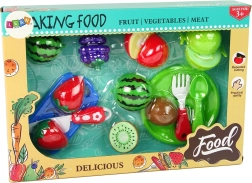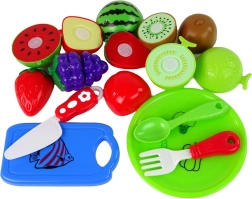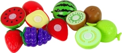 Plastmasas augļi, piemēram, zemenes, kivi, arbūzs un citi košās krāsās — tos viegli var sadalīt ar komplektā esošo nazīti.