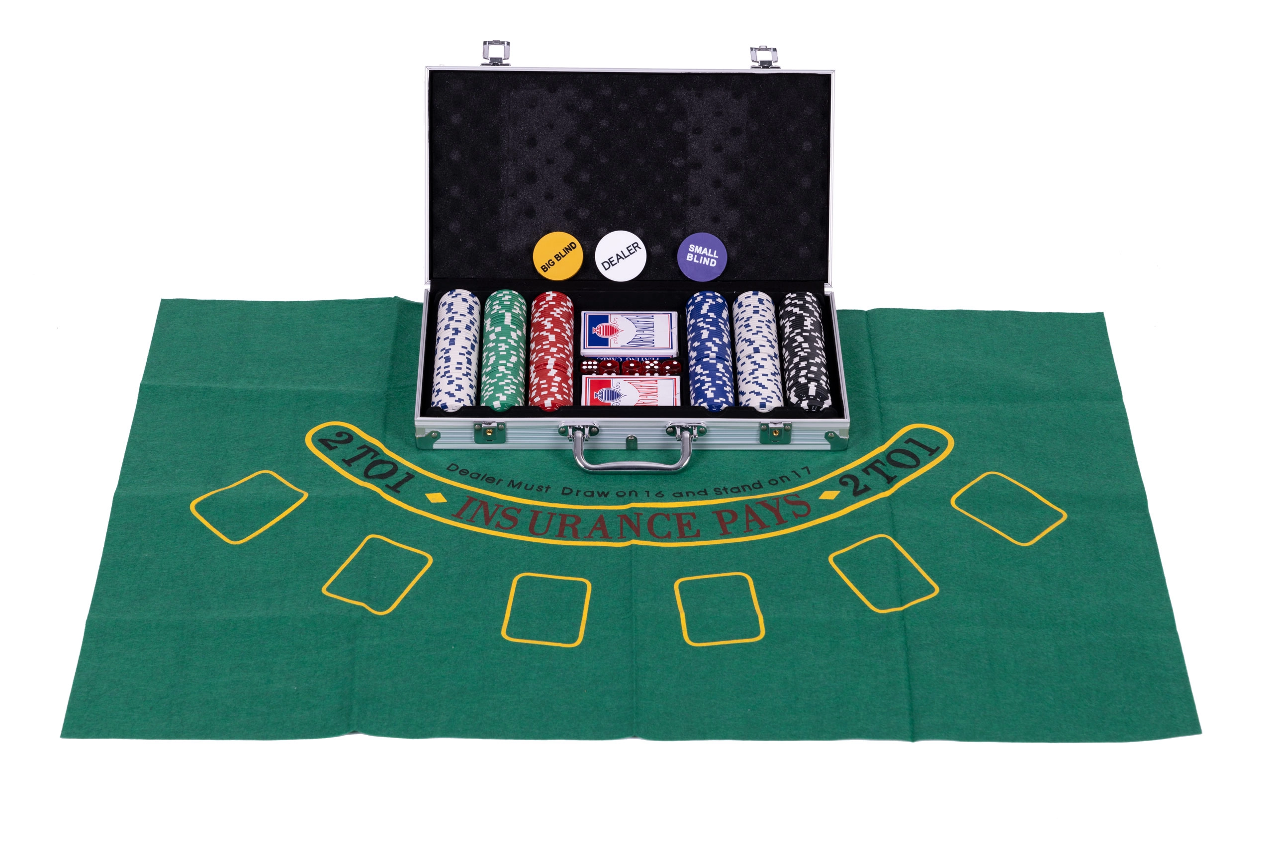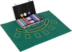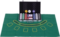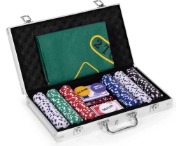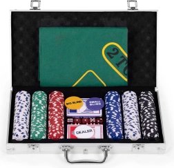 Saņemsiet pilnu visu nepieciešamo elementu komplektu pokeram un blackjackam, viss kārtīgi ievietots pārnēsājamā koferītī.