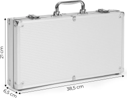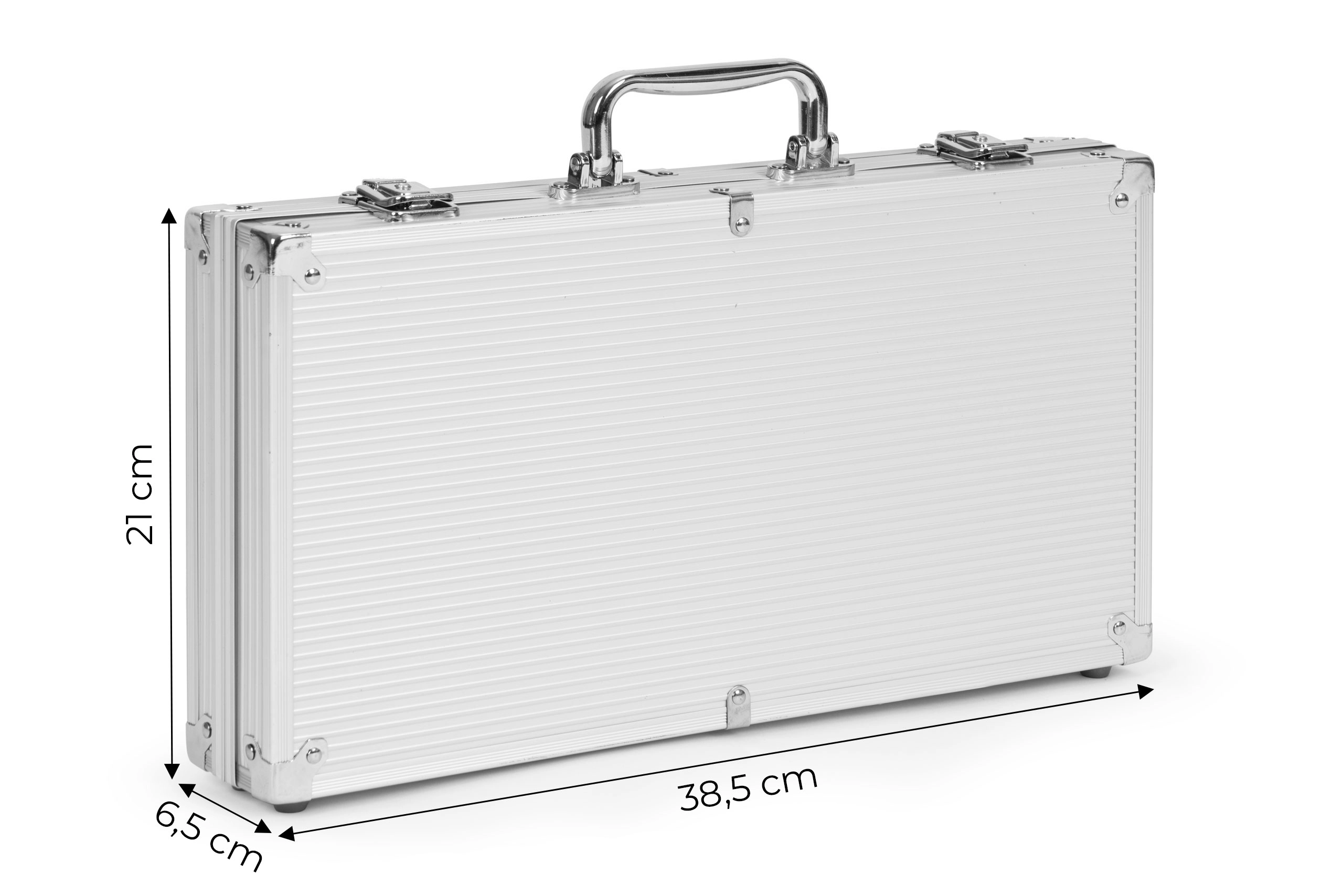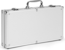 Komplekts tiek piegādāts izturīgā metāla koferītī, tādēļ tas ir ideāli piemērots pārnēsāšanai. Koferītis ir slēdzams (ietver divas atslēgas), kas novērš nejaušu atvēršanos un spēļu elementu izbiršanu.