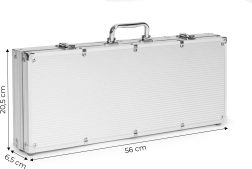 Šis pilnais komplekts ietver visu nepieciešamo pokera un blackjack spēlēšanai, iepakots izturīgā metāla koferī. To ir viegli paņemt līdzi izbraucienos vai tikšanās reizēs ar draugiem. Koferis ir slēdzams (2 atslēgas iekļautas komplektā), lai novērstu nejaušu atvēršanos un detaļu pazaudēšanu.