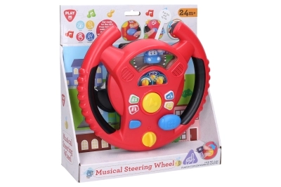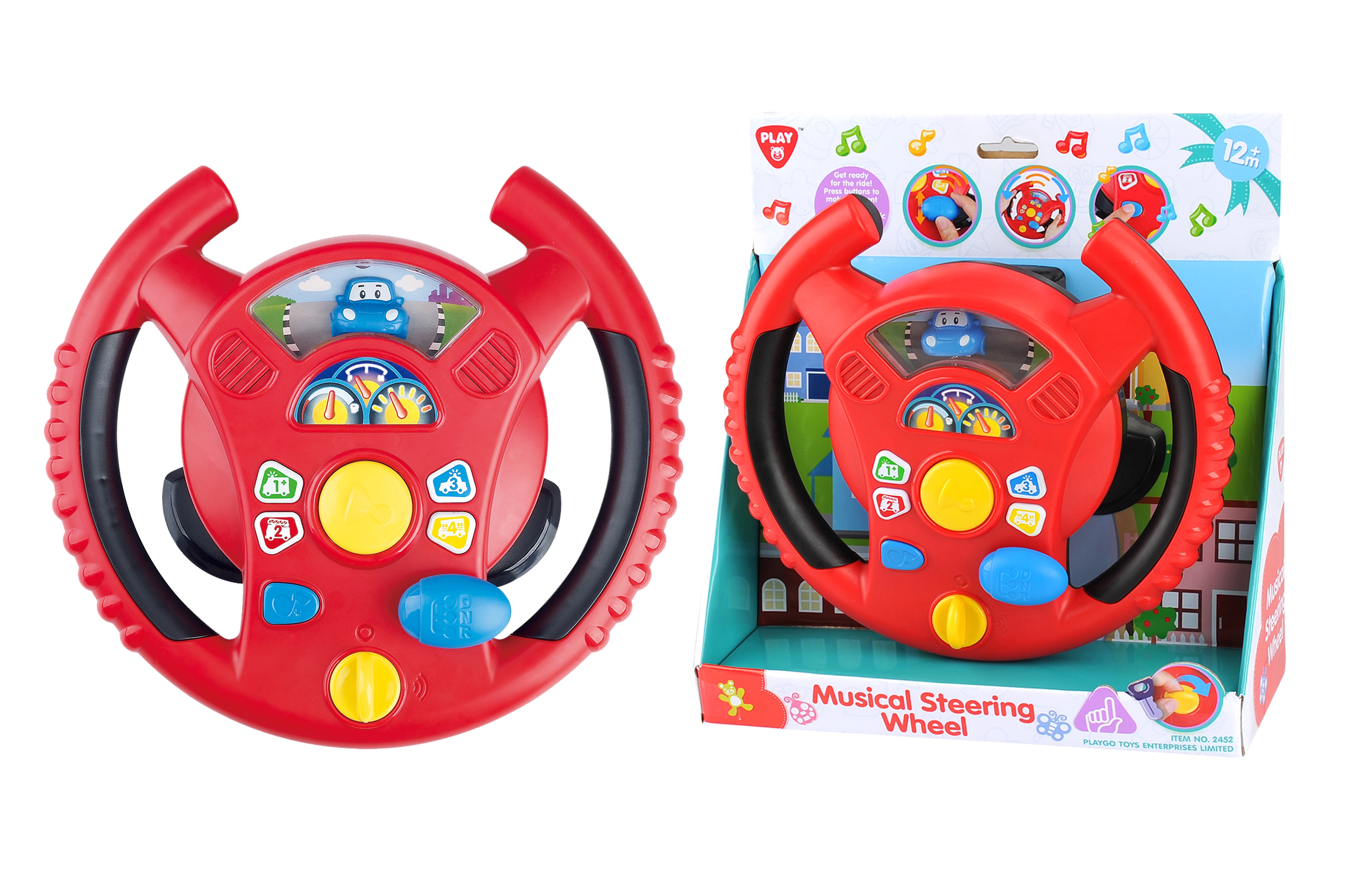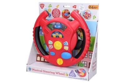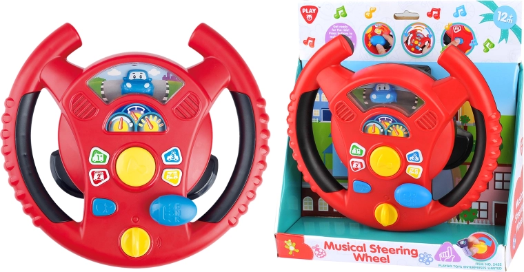 Interaktīvais Playgo stūres rats bērniem sniedz aizraujošu braukšanas spēli mini pilsētā. Rotējošais slēdzis stūres rata apakšdaļā kalpo ieslēgšanai, vidū atrodas taure, pa labi – pārnesumu svira braukšanas skaņām, bet uz stūres loka – mazas pogas ar toņiem un melodijām. Bērni izbaudīs reālistiskus efektus, kas atgādina īstu automašīnu, vienlaikus attīstot koordināciju un iztēli.