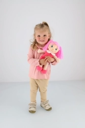 Auduma lelle Mazlinka ir radīta, lai dāvātu bērniem drošības sajūtu un prieku. Maigs tekstils un mīlīgais dizains ar rozā matiem un kleitiņu atbalsta sīko motoriku un iztēli ikdienas rotaļās.