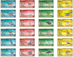 - 1 dinozaura figūriņa (dažādi veidi) + varoņa karte