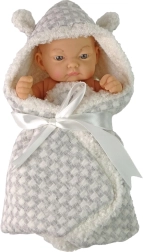 Šī burvīgā lelle ir tērpta siltā pelēkā sedziņā ar baltu loku, kas piešķir tai īsta zīdaiņa izskatu. Spēlējoties bērni apgūst empātiju, atbildību un attīsta smalko motoriku, rūpējoties par lelli. 24 cm izmērs ir lieliski piemērots ērtai satveršanai un pārnēsāšanai.