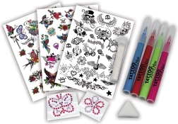 Izveidojiet savus oriģinālus tetovējumus vai mēģiniet atdarināt iemīļotus motīvus. Komplekts ir viegli lietojams un jautrs jebkurā situācijā.