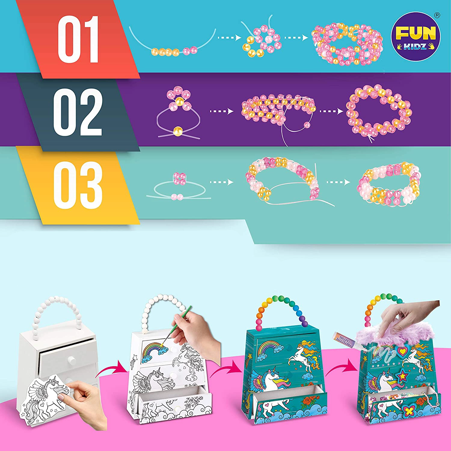 Ar šo radošo komplektu jūs izveidosiet savu koka rotaslietu lādīti, kuru varat izdekorēt pēc savas gaumes. Ideāls veids, kā glabāt visus savus dārgumus vienuviet.