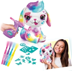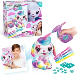 Izveido savu mīļo mīksto rotaļdzīvnieku ar oriģinālu dizainu! Ar baterijām darbināmo airbruša pistoli krāsas uzklāsi viegli, varēsi izmantot trafaretus un krāsainus flomāsterus, un dažu mirkļu laikā taps unikāls, košs mīkstais rotaļlietiņš. Komplektā ietilpst airbrush, 4 krāsu uzpildes, trafareti un instrukcija. Ideāla radoša izklaide bērniem no 6 gadu vecuma.