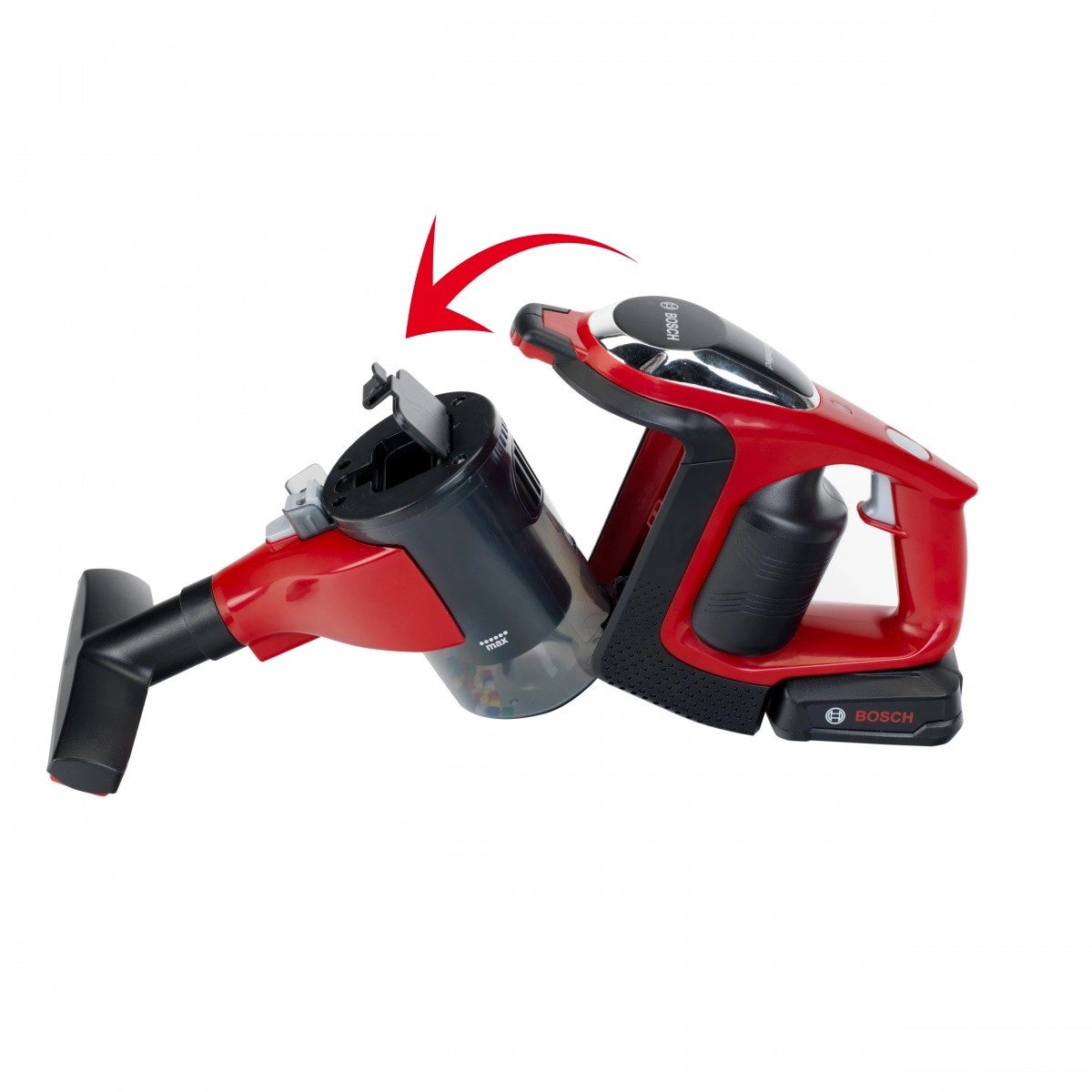 Putekļsūcējs ir detalizēta īstas Bosch ierīces kopija ar autentiskām krāsām un LED indikatoru.