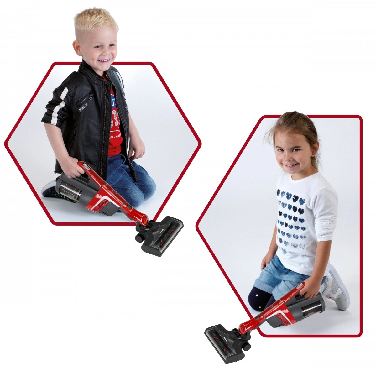 Pateicoties bateriju darbībai, putekļsūcējs ir pilnībā mobilis, un bērni var viegli vadīt tā funkcijas, piemēram, sūkšanas galvu un noņemamo rokas uzgali.