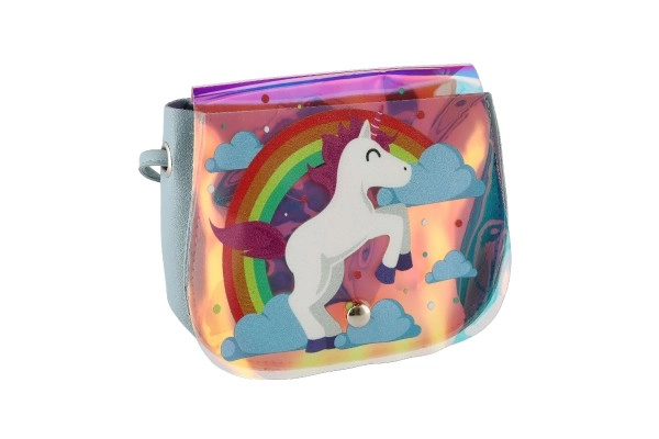 Atklājiet burvību ar šo varavīksnes somiņu, kas rotāta ar skaistu vienradzi un varavīksni. Šī soma ir ne tikai skaista, bet arī ļoti praktiska. Tā izgatavota no izturīga un patīkama materiāla, tāpēc ir ideāli piemērota ikdienas lietošanai.