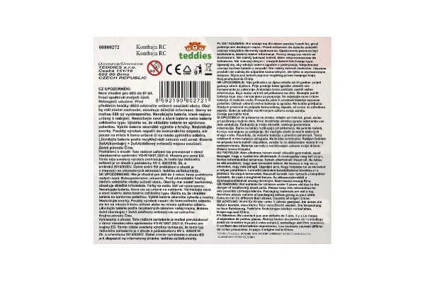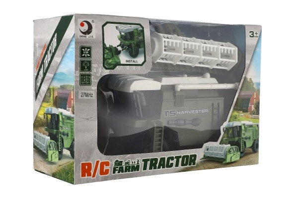Visiem mazajiem lauksaimniekiem! Detalizēti izstrādāts RC kombains pelēki zaļā krāsā ar noņemamu pļaušanas galvu, sānu izkraušanas roku un gaismas efektiem nodrošina realistisku spēli. Pateicoties 27 MHz vadībai, to ir viegli stūrēt, un ar 22 cm garumu tas lieliski ieguļ bērna rokā. Baterijas 5× AA nav iekļautas komplektā. Piemērots no 3 gadu vecuma.