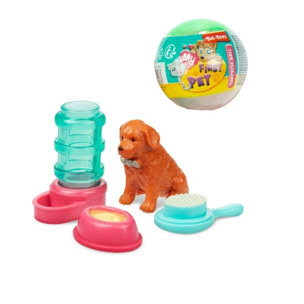 Šī mīlīgā MY FIRST PET pārsteiguma bumbiņa iepriecinās ikvienu mazo mājdzīvnieku mīļotāju. Iekšā atradīsiet sunīša vai kaķīša figūriņu un uzreiz trīs aksesuārus jautrai rūpju spēlei par mājdzīvnieku.