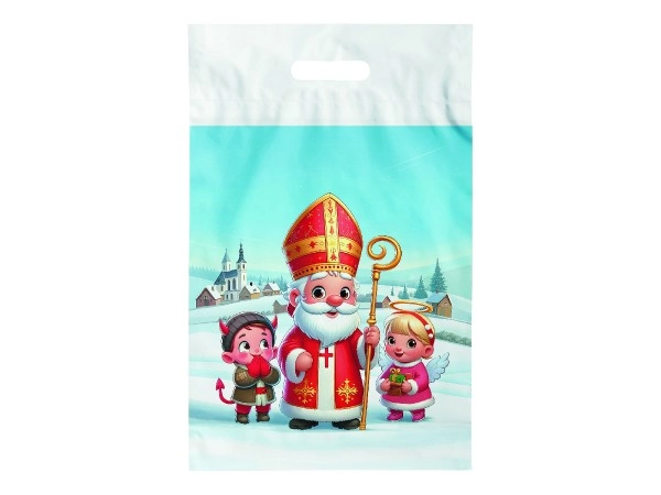 Praktisks plastmasas dāvanu maisiņš ar Mikulāša motīvu un izgriezumu satveršanai. Pateicoties izturīgajai plastmasai, tas ir noturīgs pret plīsumiem un mitrumu, ideāli piemērots Mikulāša dāvanām, saldumiem un rotaļlietām. Izmērs 29×46 cm ir piemērots arī lielākiem priekšmetiem.