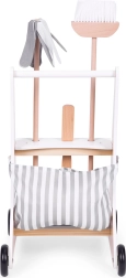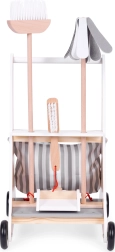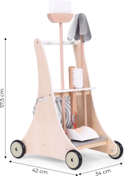 Atbalstiet bērnu fantāziju un patstāvību ar koka tīrīšanas komplektu, kas sajūsmina ar iespēju atdarināt pieaugušos. Ratiņi ar riteņiem atvieglo pārvietošanos pa istabu un pārskatāmi tur visu piederumu savās vietās. Pateicoties kvalitatīvam koka un tekstila izpildījumam, komplekts ir izturīgs, drošs un patīkams pieskārienam.