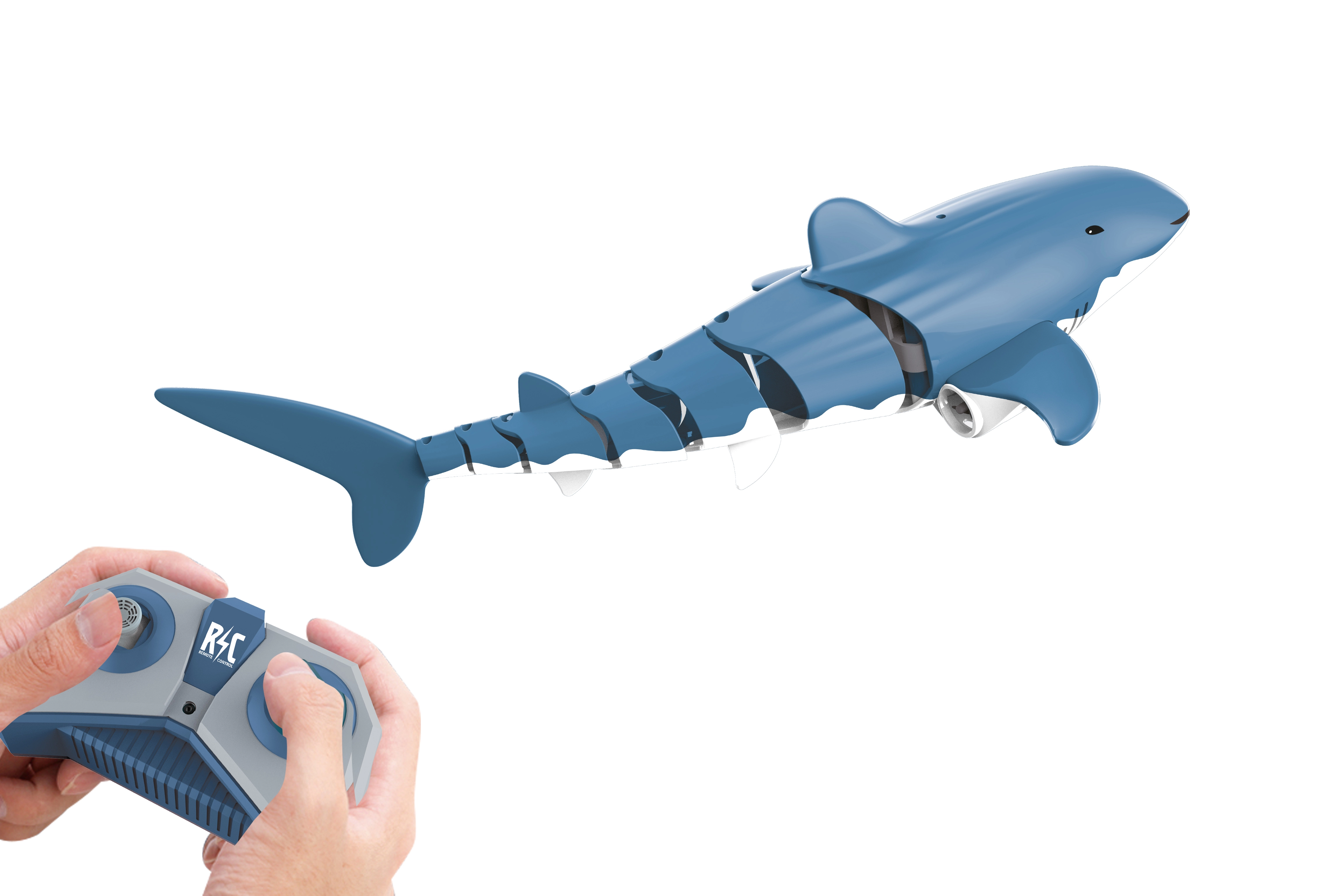 Segmentēts korpuss un divi rotori zem priekšējām spurām nodrošina dabisku viļņošanos un veiklību, kas atgādina īstu haizivi.