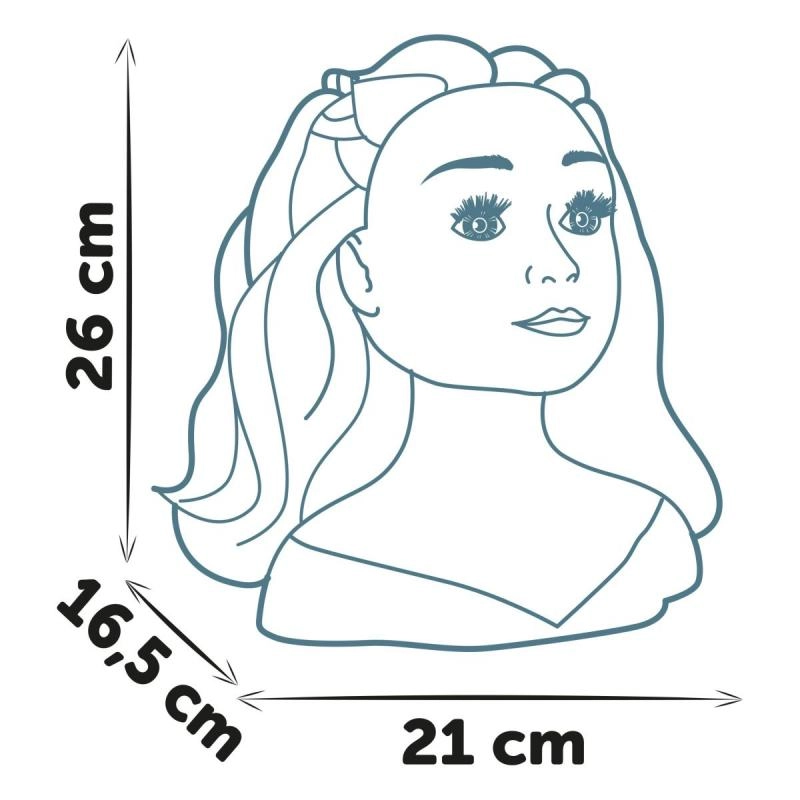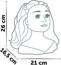 Atklāj radošo frizūru pasauli ar My Beauty ķemmējamo galvu. Pateicoties realistiskajiem matiem, tu viegli izveidosi modernas frizūras, bet maģiskā lūpu funkcija pēc pieskāriena ar otiņu, kas samērcēta aukstā ūdenī, izcels grimu. Komplektā ir 19 aksesuāri, kurus vari paslēpt slepenajā nodalījumā pamatnē, un piesūcekņi stabilitātei nodrošina, ka galva stingri turas savā vietā. Augstums 26 cm.