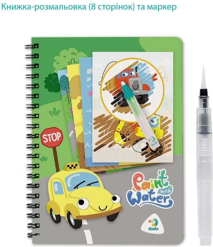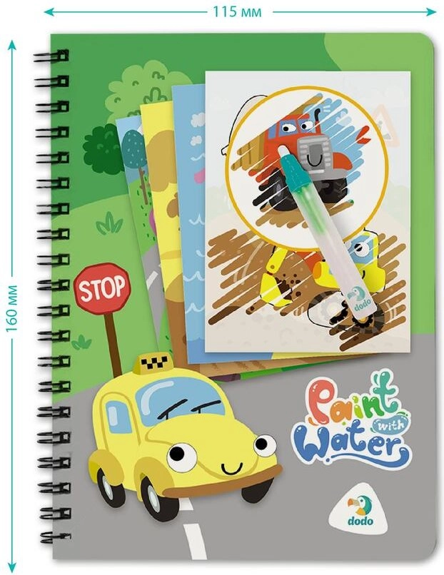 Radošs bloks ar transporta motīviem sniedz bērniem bezgalīgu prieku: piepildiet ūdens otiņu, pārvelciet pāri lapai un vērojiet, kā parādās košas krāsas un detaļas automašīnām, vilcieniem vai lidmašīnām. Pēc nožūšanas ilustrācijas atgriežas sākotnējā stāvoklī, un bērni var krāsot no jauna.