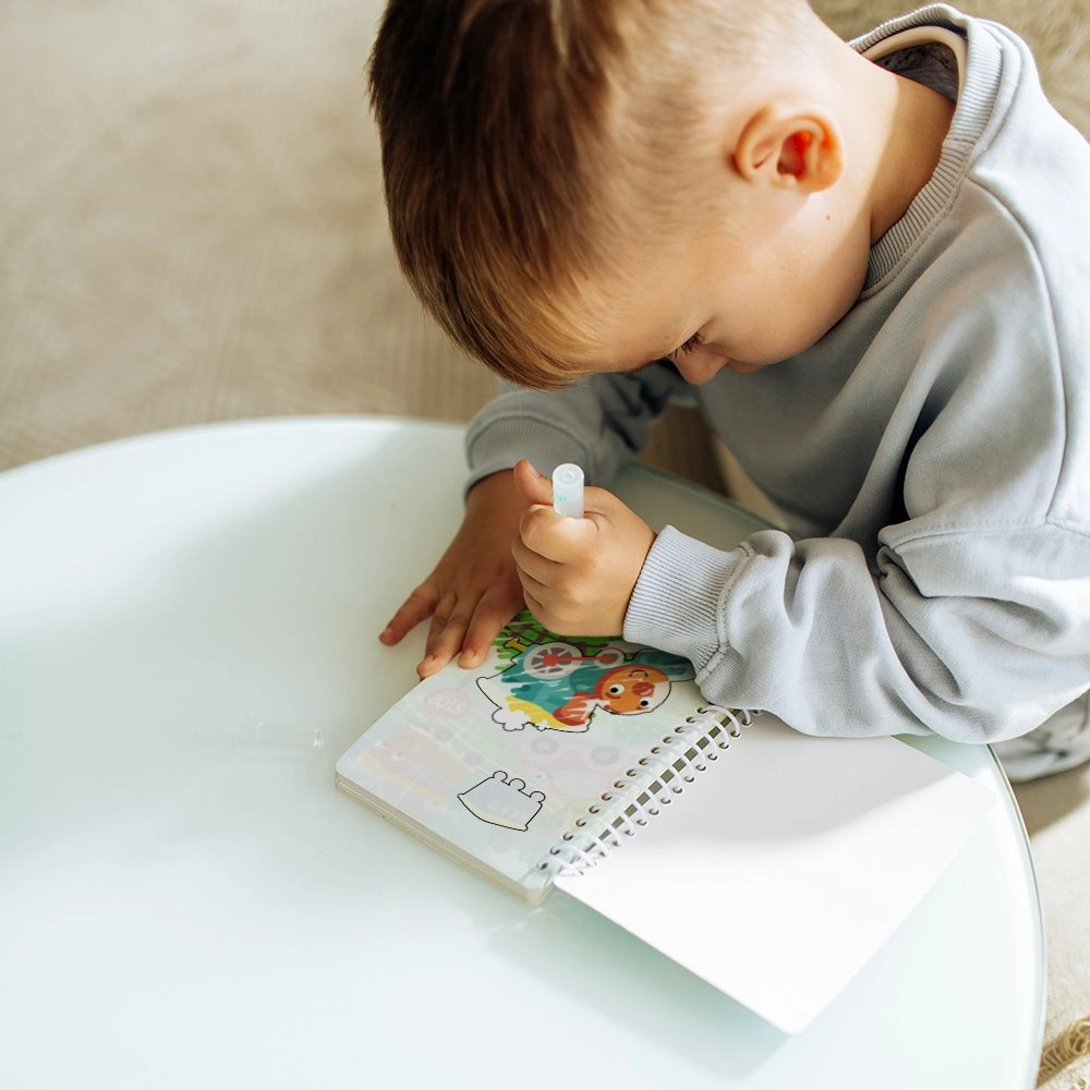 Spirālveida iesējums atvieglo lappušu pāršķiršanu, bet kompaktie izmēri 12 × 14 cm ir perfekti mugursomai. Nodarbe attīsta sīko motoriku, acu–roku koordināciju un radošumu bez traipu riska.