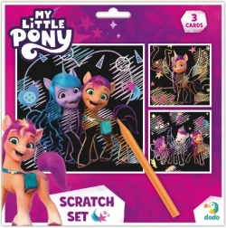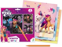 Atklājiet radošās veidošanas prieku ar šiem skrāpējamajiem attēliem, kas aicina atklāt slēptās krāsas. Komplektā iekļauti trīs dažādi krāsaini attēli, iedvesmoti no My Little Pony, un īpaša skrāpējamā pildspalva: