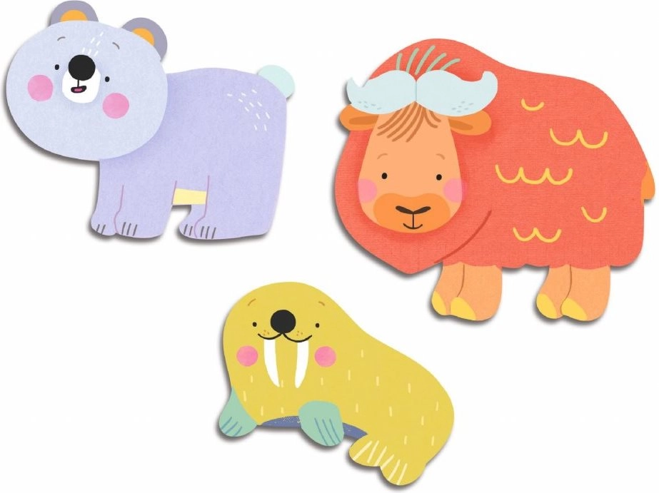 Praktisks iepakojums dzīvnieka formā un caurspīdīga glabāšanas kastīte palīdz turēt visu kārtībā gan mājās, gan ceļā. Polārie motīvi piesaista uzmanību un veicina dzīvnieku un krāsu atpazīšanu.