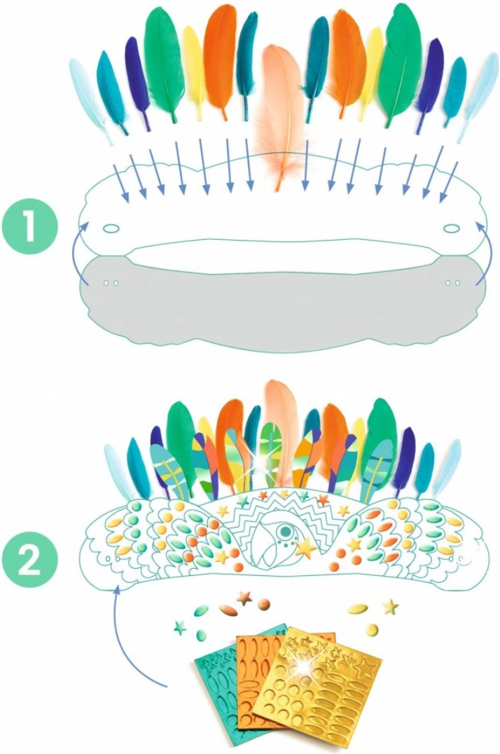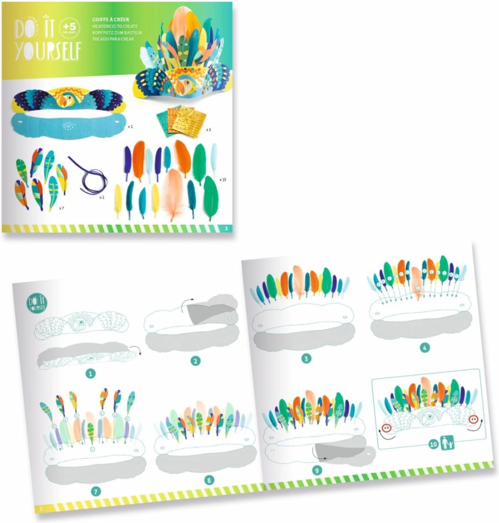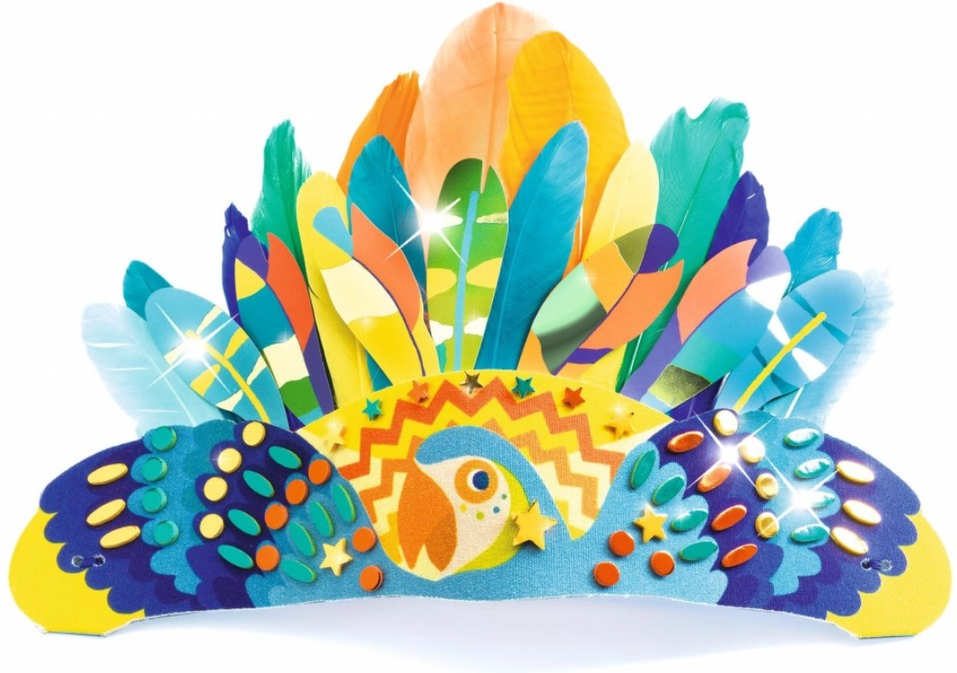 Komplekts DJECO DIY Rio galvas lente piedāvā aizraujošu un vienkāršu veidu, kā bērni var izveidot savu svētku galvas rotu. Pateicoties tekstila pamatnei, tā ir ērta un izturīga, turklāt der visiem galvas izmēriem. Iepakojumā iekļauts: