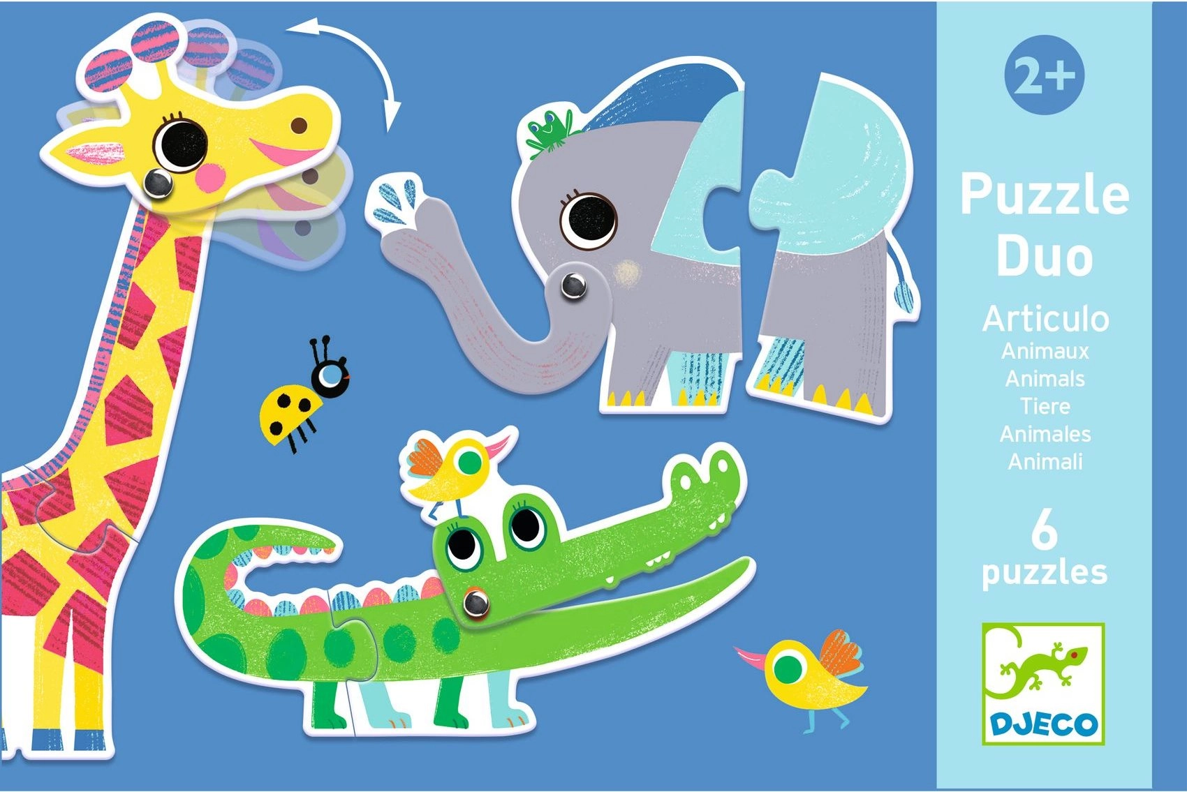 DJECO Puzzle Duo Dzīvnieki ir ideāla rotaļlieta pašiem mazākajiem. Komplektā ir 6 divdaļīgas puzles, kas palīdz attīstīt sīko motoriku un loģisko domāšanu. Lielie puzles gabali ir viegli satverami, tādēļ tie ir piemēroti mazām rociņām.