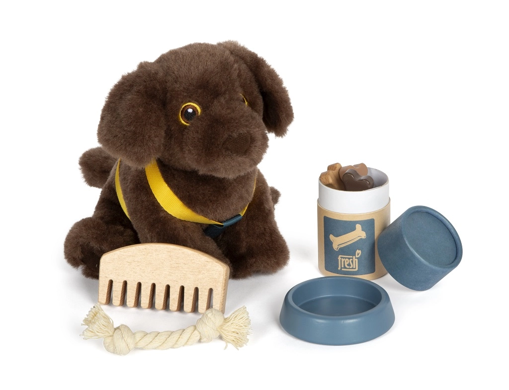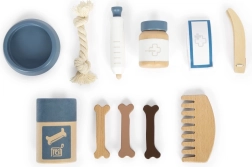 Saturs ietver visu nepieciešamo suņa kopšanas inscenēšanai, tostarp bļodiņu, kārumu kārbiņu, birsti un citus piederumus, kas padara spēli reālistisku un aizraujošu.