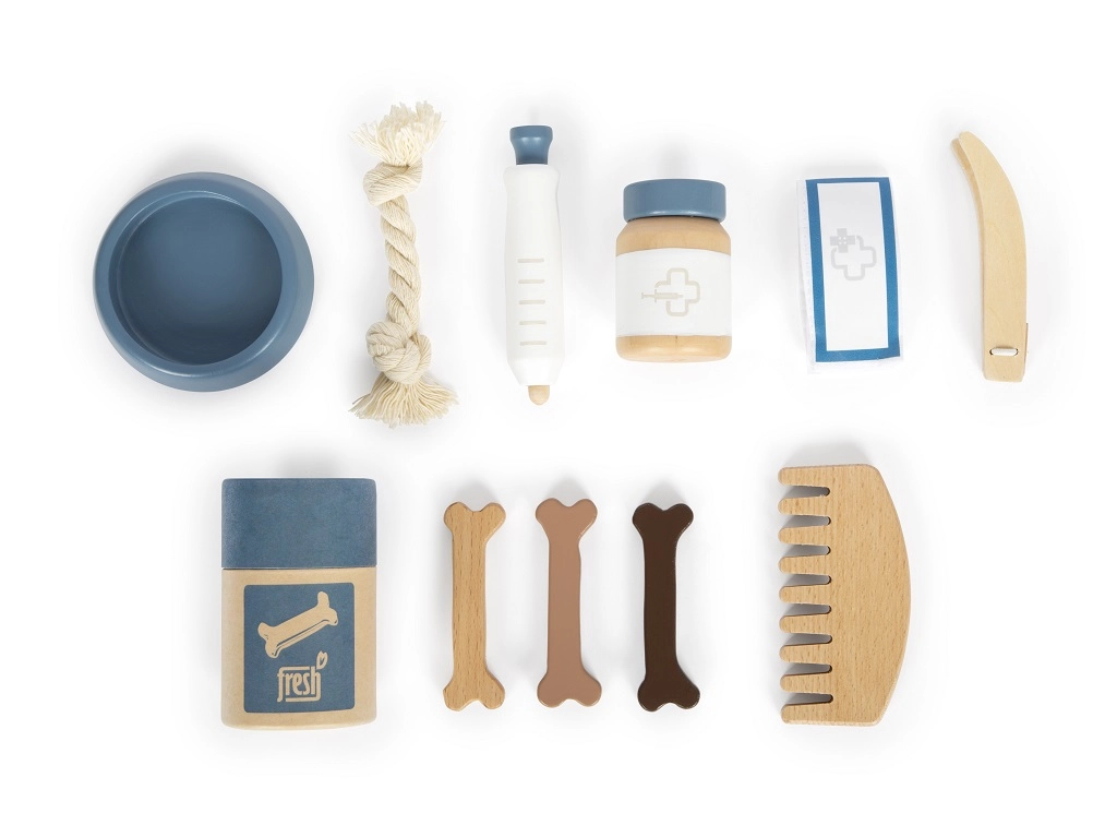 Ar šo kopšanas komplektu bērni var izbaudīt rūpes par mājdzīvnieku. Lieliski piemērots ceļojumiem un lomu spēlēm ar saturu, kas piedāvā dažādus spēļu scenārijus: