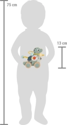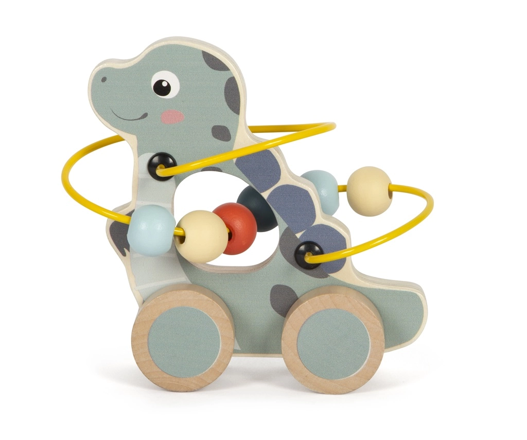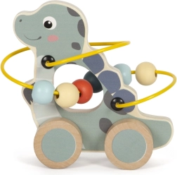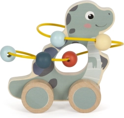 Dinosurs piedāvā vilkšanu uz riteņiem un interaktīvu krellīšu labirintu, kas attīsta bērnu smalko un rupjo motoriku.