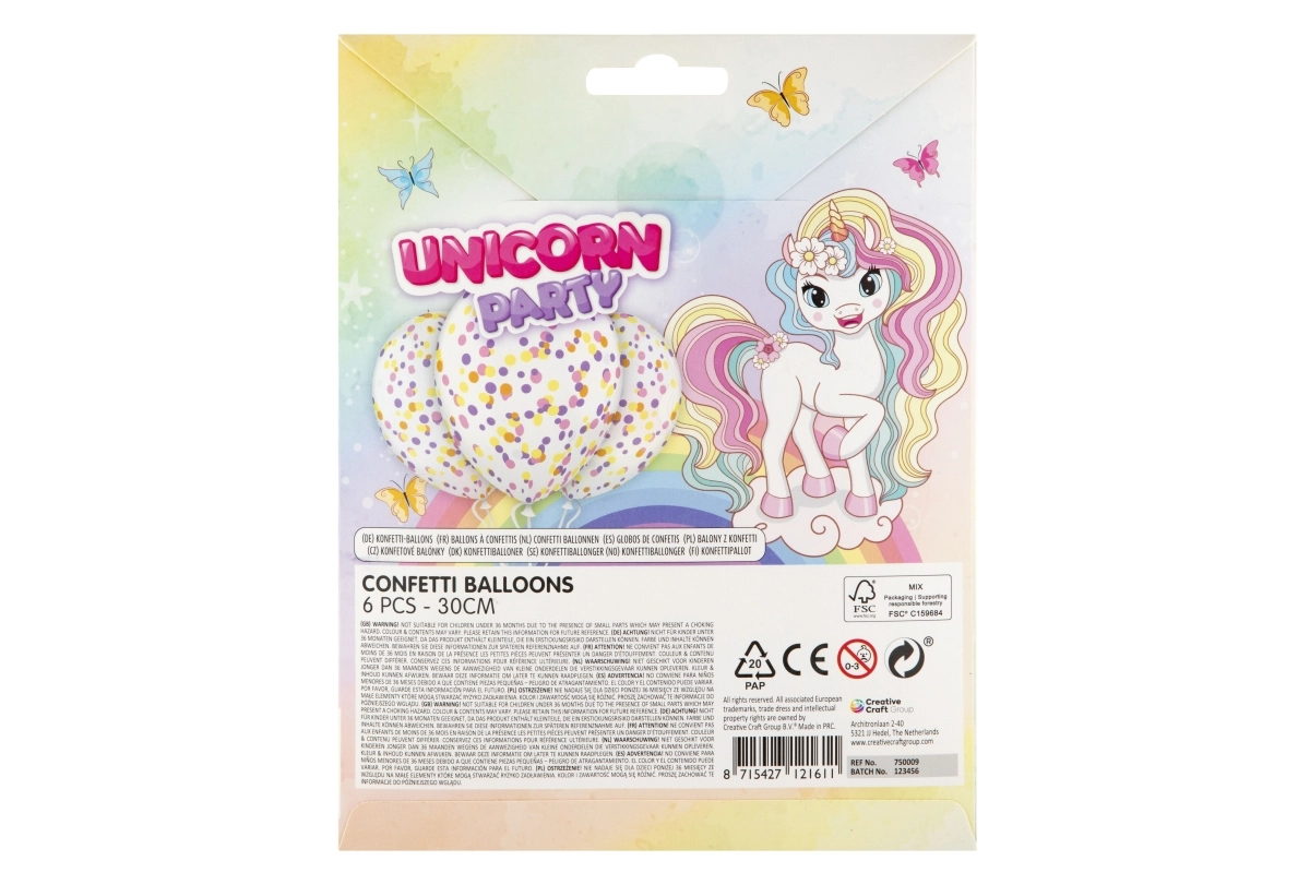 - Tūlītējs ballītes efekts – mirdzoši konfeti caurspīdīgā balonā.