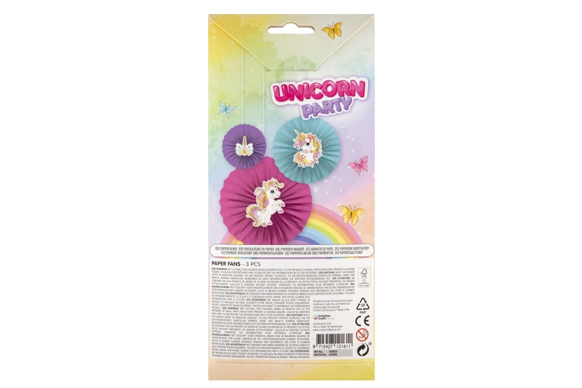 Piešķiriet jebkurai svinībai apburošu noskaņu ar šiem papīra vēdekļiem ar vienradža motīvu. Iepakojumā atradīsiet 3 krāsainus gabalus (rozā, zilu, violetu), ideāli piemērotus bērnu dzimšanas dienu dekorēšanai, tematiskiem ballīšu pasākumiem un fotostūrīšiem.