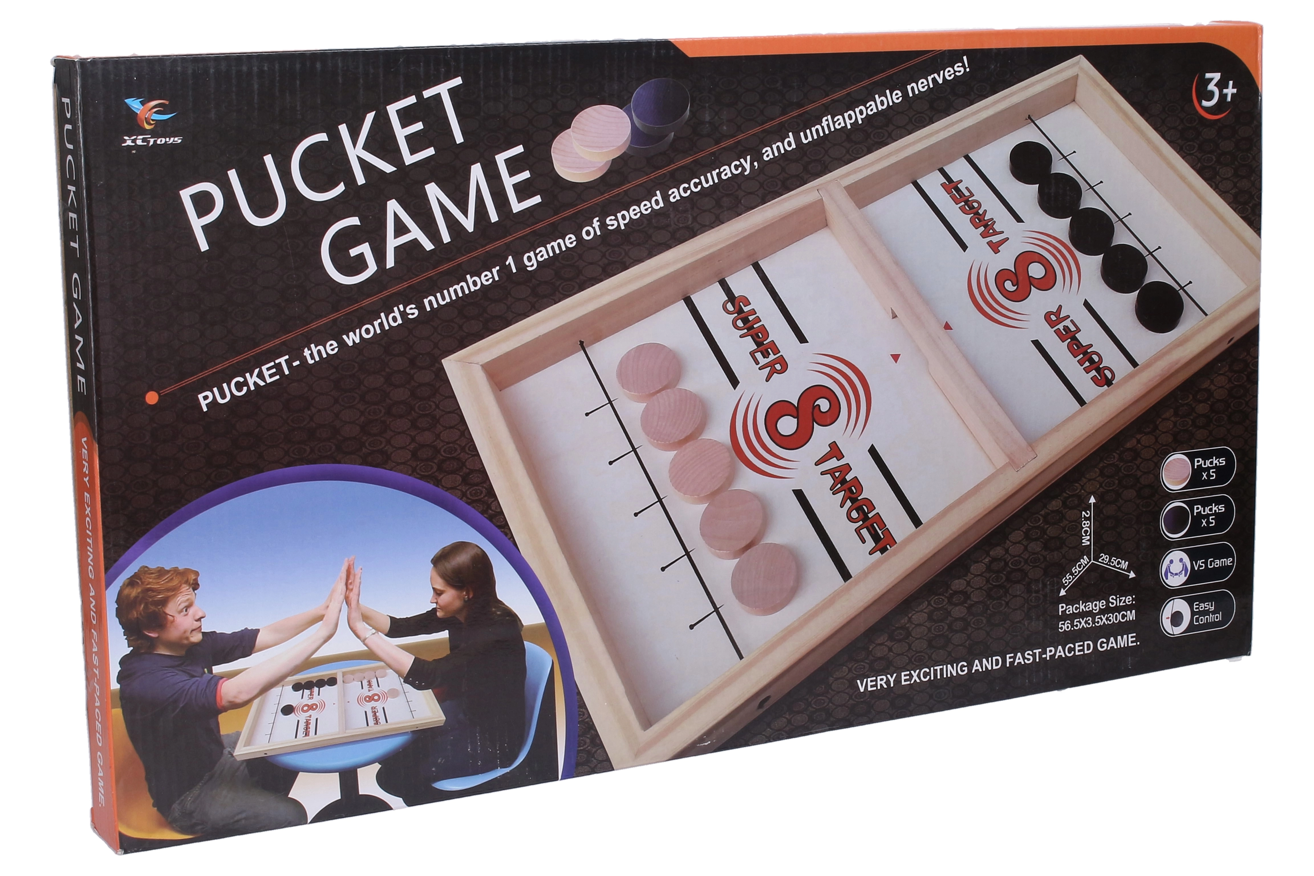 Piedāvājam jums koka galda hokeju, lieliski piemērotu jebkuram ģimenes vakaram vai draudzīgām tikšanām. Spēle ir izstrādāta tā, lai tajā varētu iesaistīties gan bērni no 3 gadu vecuma, gan pieaugušie. Vienkārši paņemiet piecus ripas, uzstiepiet auklu un centieties pēc iespējas vairāk no tām aizsūtīt pretinieka pusē.