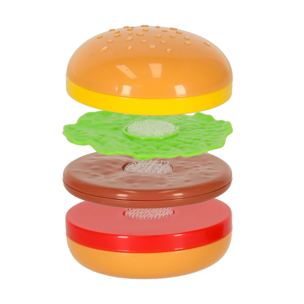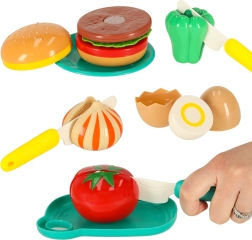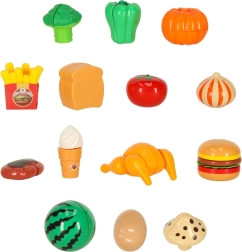 Apjomīgs komplekts bērnu virtuvei piedāvā visu, kas mazajiem pavāriem nepieciešams: pica gabalos, hamburgers, dārzeņi, augļi un saldumi. Daļas sadalītas pusītēs un savienotas ar lipekļiem, tāpēc bērni var droši trenēt griešanu, pasniegšanu un ēdienkartes sagatavošanu visai ģimenei.