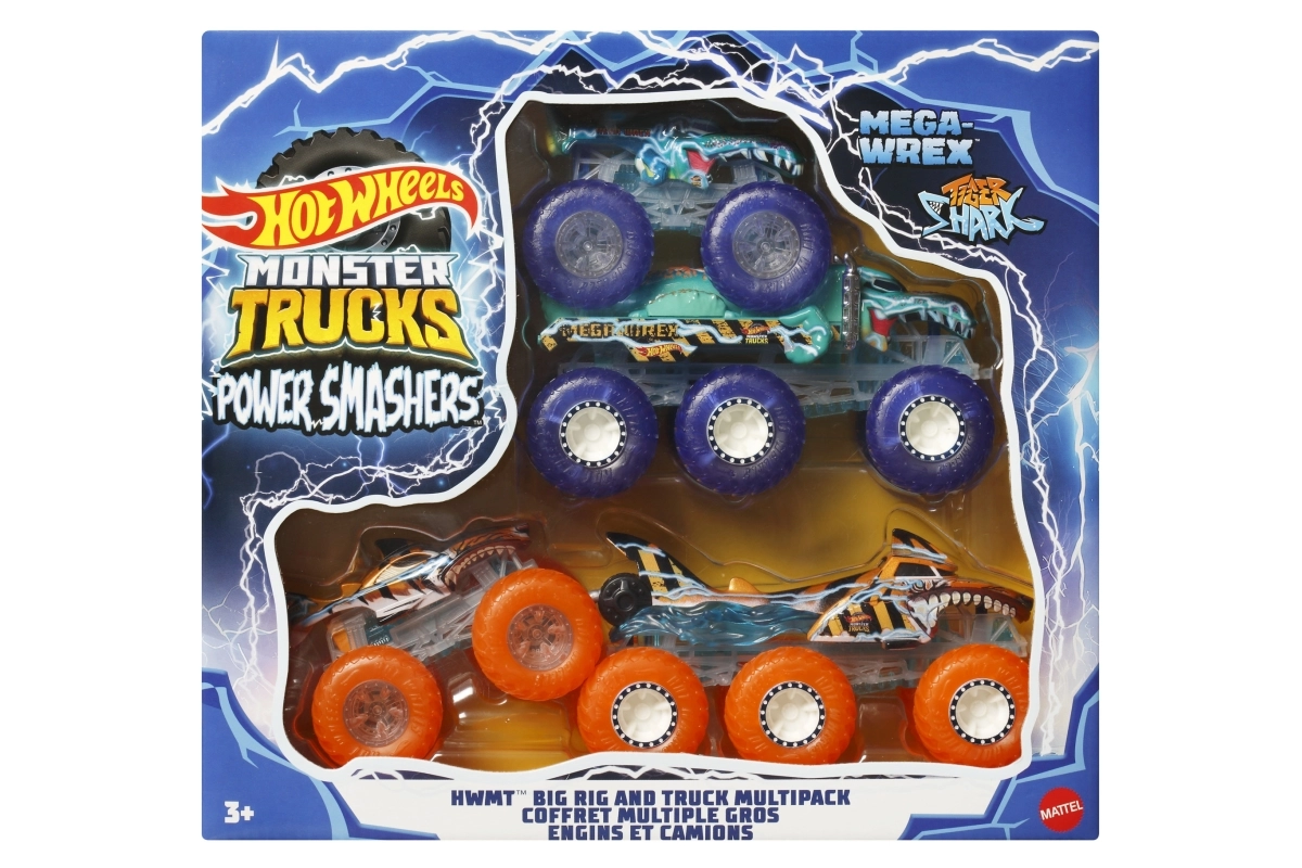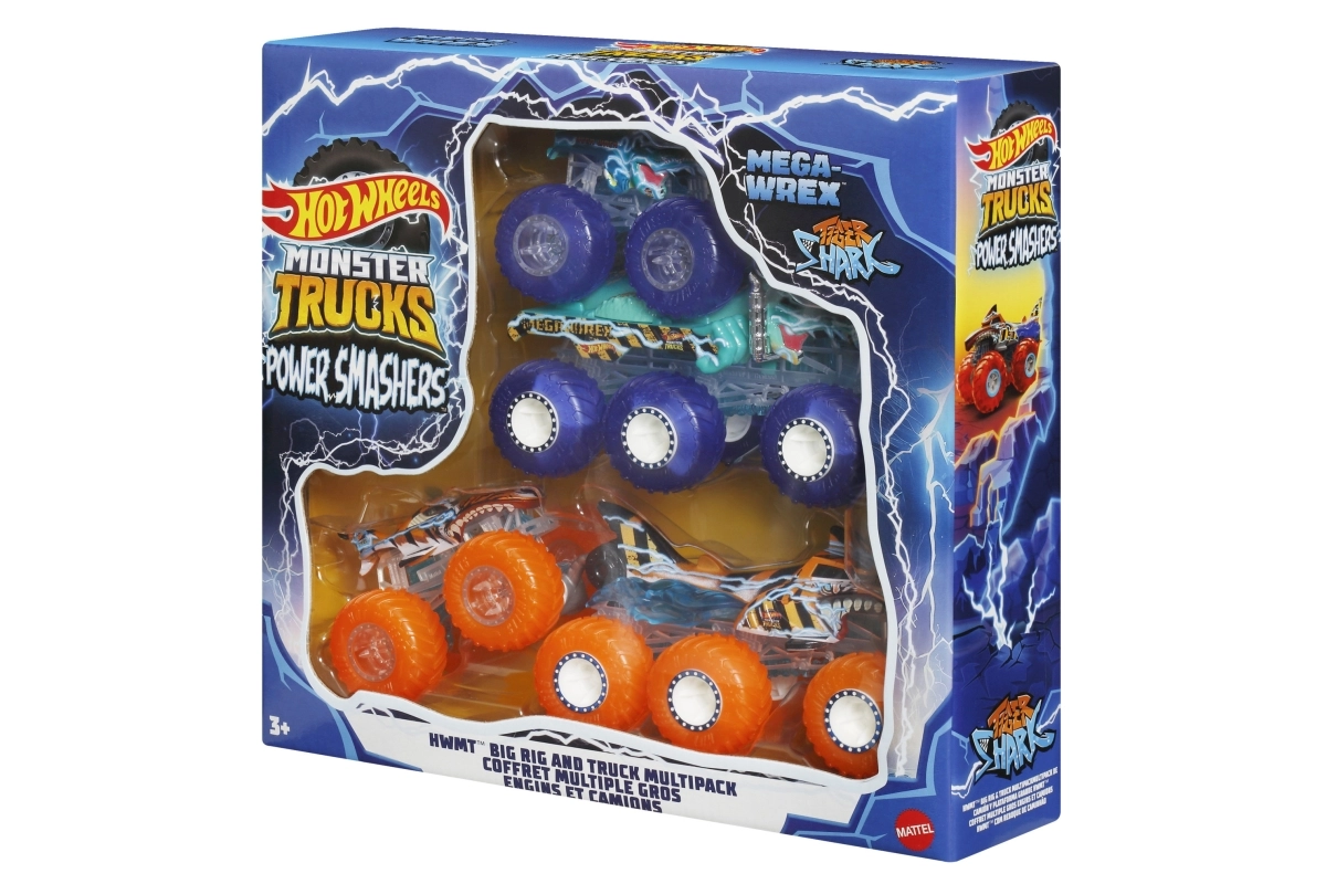 Šeit spēks un izklaide satiekas šajā izcilajā Hot Wheels Monster Trucks Power Smashers automašīnu komplektā. Tas ietver divus smagos kravas vilcējus un divas mazākas automašīnas 1:64 mērogā. Detalizācija, dizains un lielās gumijas riepas nodrošina neaizmirstamus spēļu piedzīvojumus!