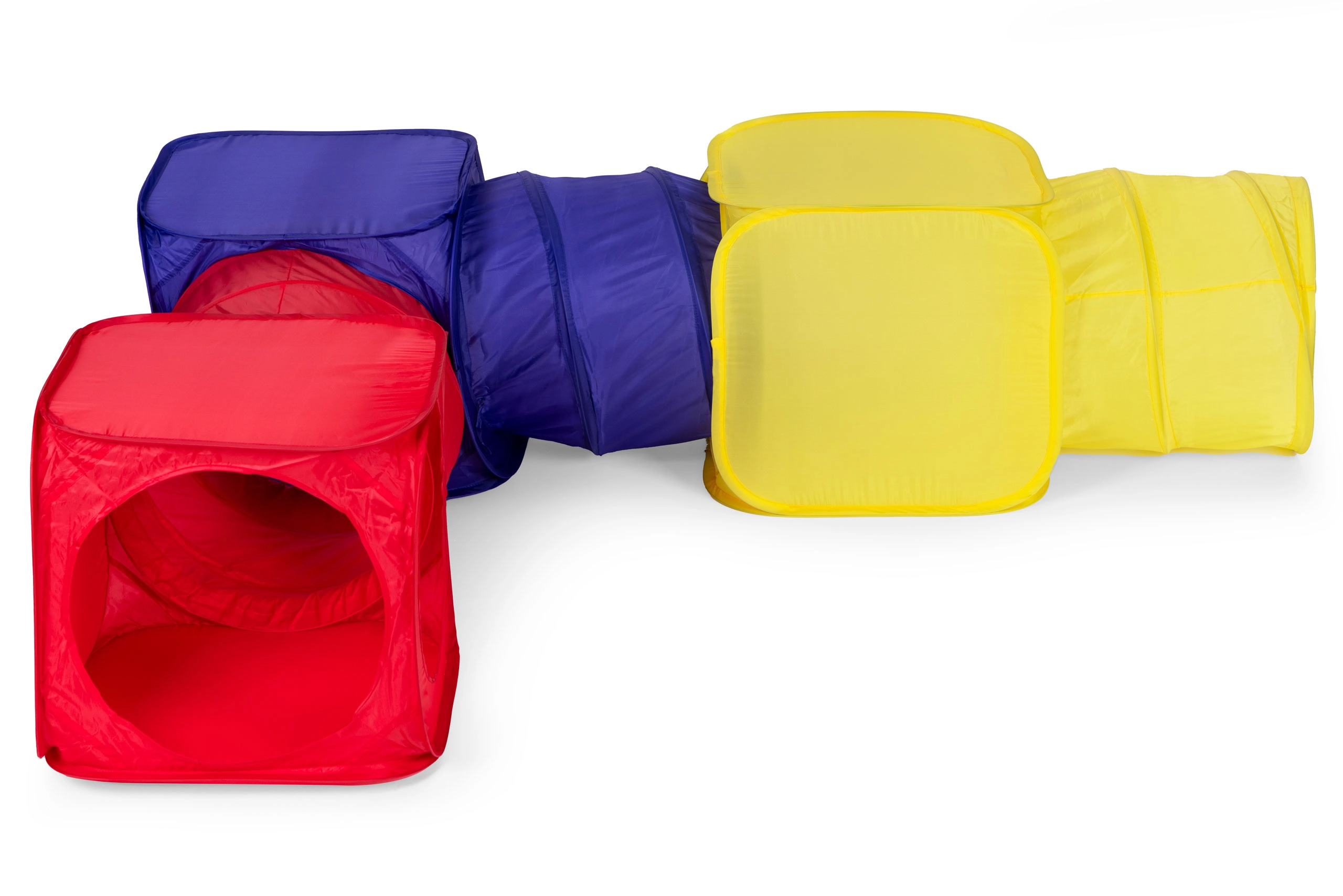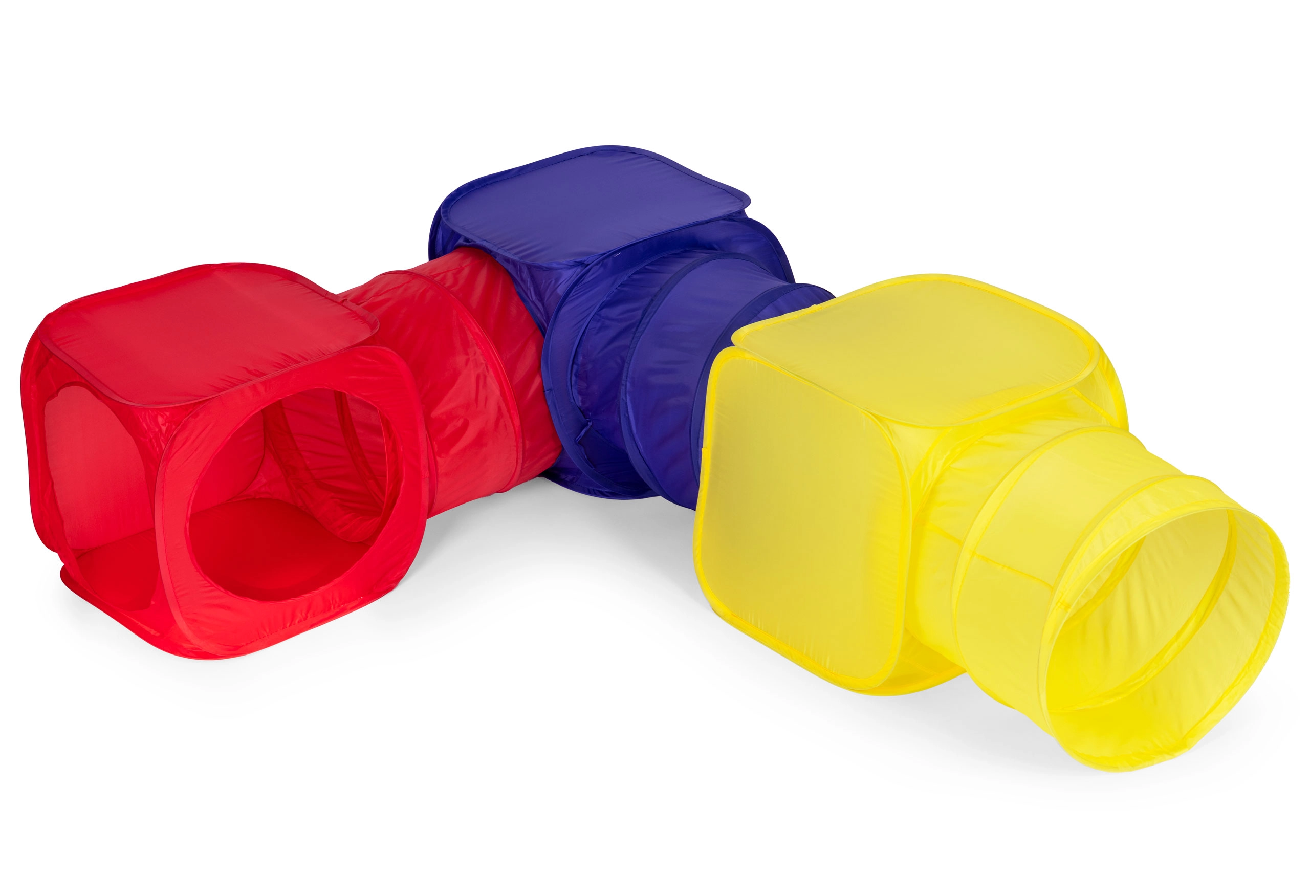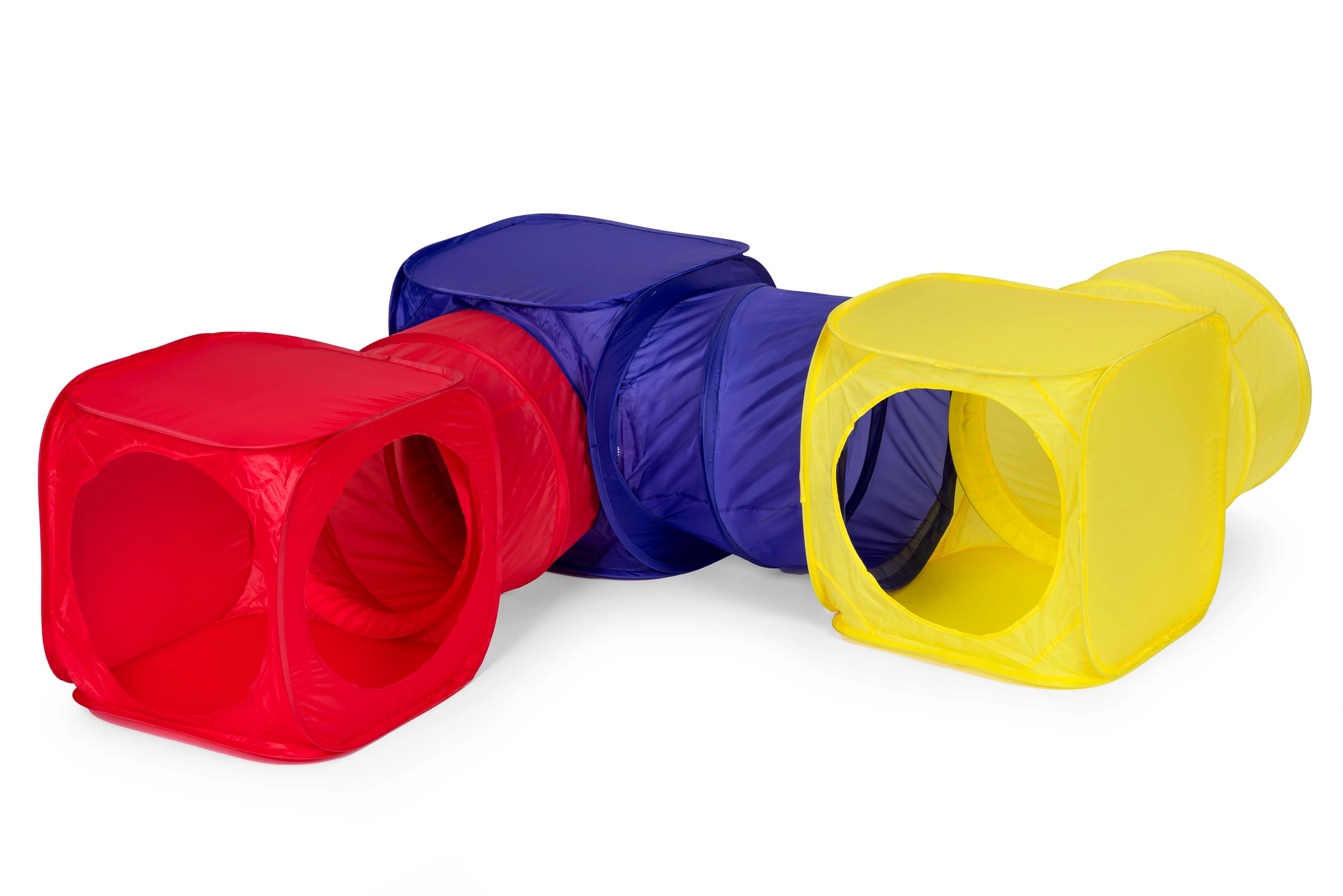 Šajā komplektā bērniem ir 3 kubu teltis un 3 tuneļi, kurus var kombinēt un izvietot jebkurā konfigurācijā. Vienkārša montāža un vieglais dizains nodrošina nebeidzamu jautrību.
