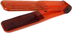 Oranžs plastmasas taisnotājs ar rievotu virsmu ir lielisks aksesuārs bērniem, kuri vēlas atdarināt pieaugušo matu ieveidošanu.