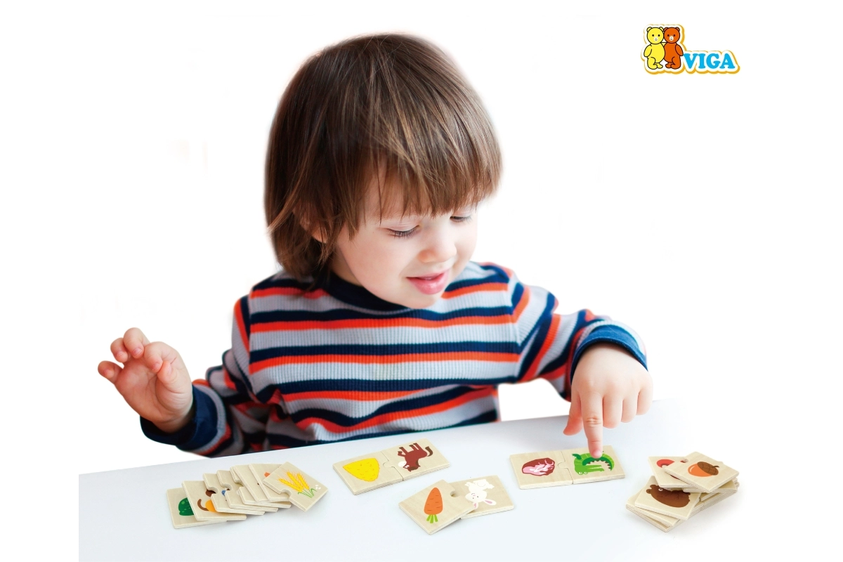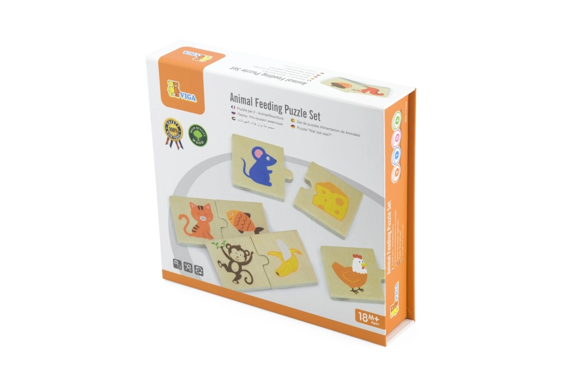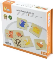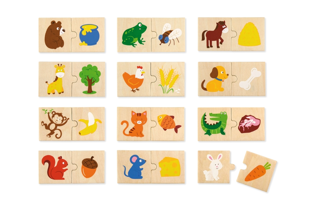 Atklājiet jautru un izglītojošu koka puzli, kurā bērni pārī savieno dzīvniekus ar to iecienīto barību. Komplektā ir 24 izturīgi koka gabaliņi ar košām ilustrācijām, izgatavoti no kvalitatīvas koksnes un krāsoti ar netoksiskām krāsām. Ideāli bērniem no 18 mēnešu vecuma loģikas, sīkās motorikas un roku–acu koordinācijas attīstīšanai.