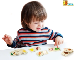 Mācīties rotaļājoties ir visjautrāk. Šajā komplektā bērni veido pareizos pārus – mīļš dzīvnieciņš un barība, kas tam garšo. Pateicoties spilgtajām krāsām un saprotamajām ilustrācijām, viņi ātri uztver sakarības un dabiski attīsta vārdu krājumu, atpazīšanu un loģisko domāšanu.