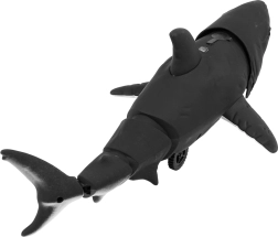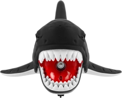 Šī melnā haizivs no kvalitatīvas plastmasas izceļas ar reālistisku izskatu – raksturīgie baltie zobi, aso muguras spuru un garo asti, kas nodrošina “dzīvas” kustības efektu. Infrasarkanā pults ļauj bērniem viegli manevrēt: uz priekšu, atpakaļ, pa kreisi un pa labi. Braukšanas laikā haizivs kustina asti un korpusu, tai ir spīdošas acis un tā spēj miglot ūdeni vēl intensīvākai spēlei.