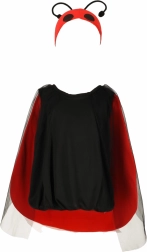 Perfekts divdaļīgs bērnu mārītes kostīms, kas sastāv no sarkana apmetņa ar melniem punktiņiem un cepurītes ar taustekļiem. Lieliska izvēle dažādām svinībām un tematiskiem pasākumiem.