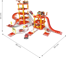 Lielā ugunsdzēsēju autostāvvietas garāža piedāvā 4 stāvus pilnus izklaides, 100 detaļas sava pilsētas komplekta veidošanai un reālistiskus piederumus, tostarp degvielas uzpildes staciju, heliportu un 2 mašīnītes ar helikopteru. Drošs izpildījums bez asām malām, piemērots bērniem no 3 gadu vecuma.