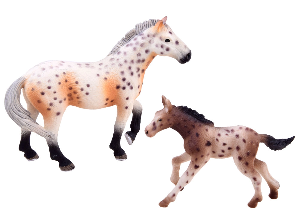 Divas detalizētas figūriņas ar uzticamu krāsojumu palīdz iepazīt zirgus un veidot radošus stāstus no saimniecības dzīves.