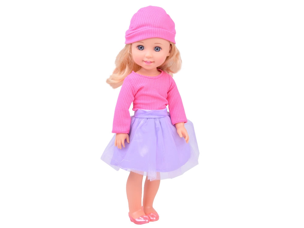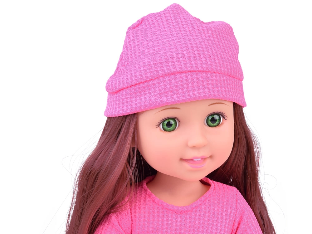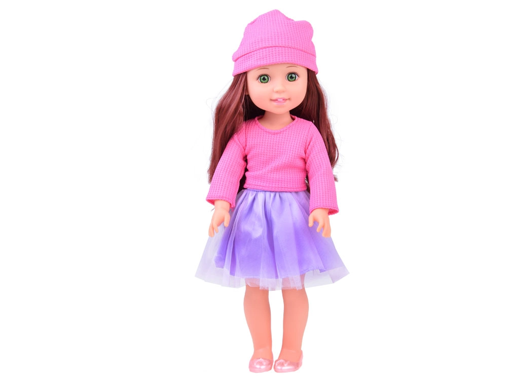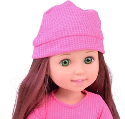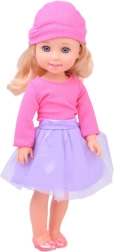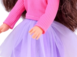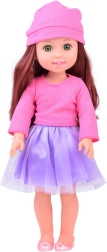 Eleganta lelle, 36 cm augsta, ir ideāls kompanjons mazajām meitenēm. Pateicoties garajiem brūnajiem viļņainajiem matiem, kurus var ķemmēt un veidot, tā veicina bērnu modes izjūtu un attīsta prasmes matu kopšanā. Viņa ir ģērbusies stilīgā rozā blūzē un violetos svārkos, bet kopā ar rozā kurpītēm un cepuri piedāvā elegantу izskatu. Kustīgas rokas un kājas atvieglo lelles pozēšanu dažādās pozās, kas veicina radošu un iztēles pilnu spēli.