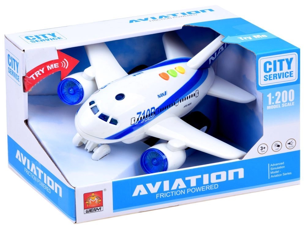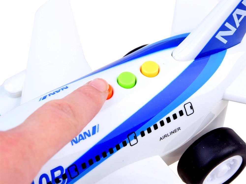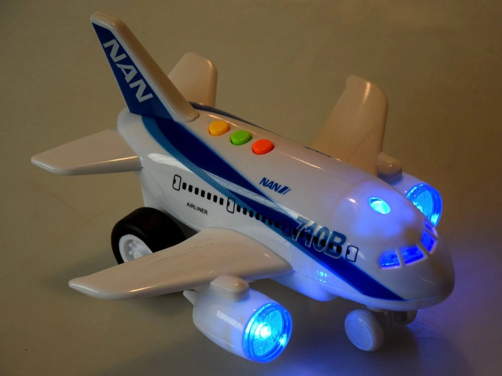 Interaktīvā lidmašīna iepriecinās ikvienu bērnu, kas sapņo par lidošanu. Pateicoties berzes piedziņai (Friction power), pēc vieglas grūdiena lidmašīna raiti traucas pa gludu virsmu. Nospiežot krāsainās pogas augšpusē, ieslēdzas gaismas efekti kabīnē un dzinējos, stjuartes balss angļu valodā un reālistiska lidmašīnas skaņa.