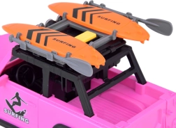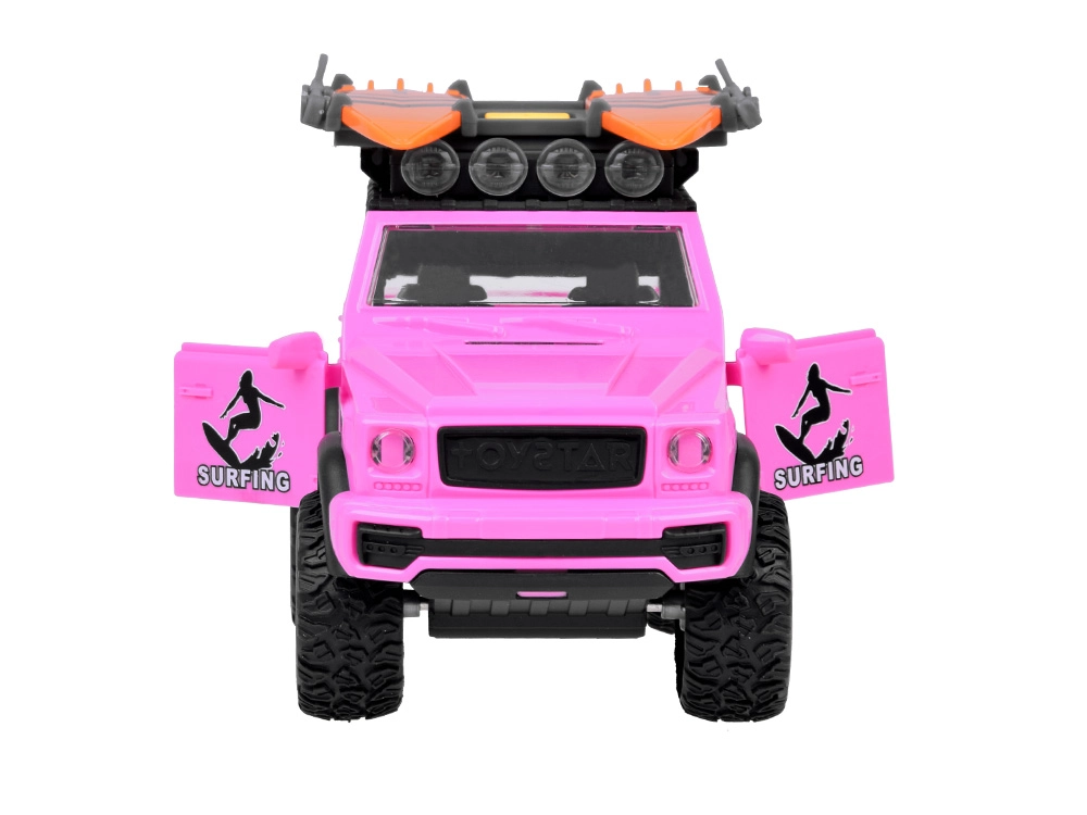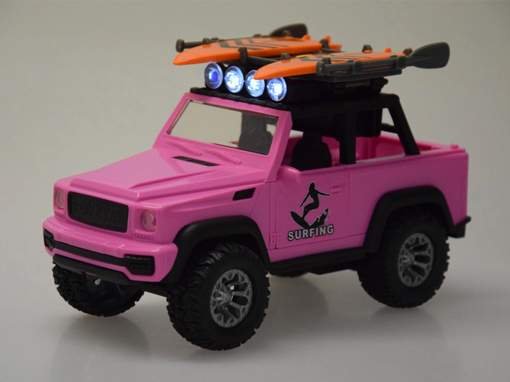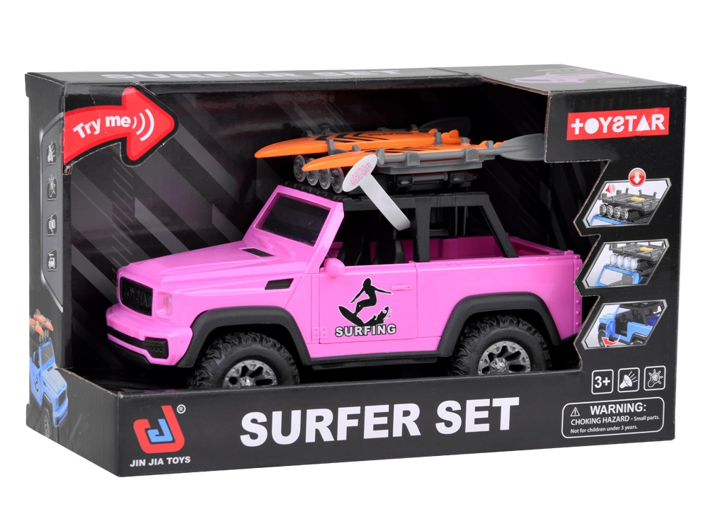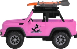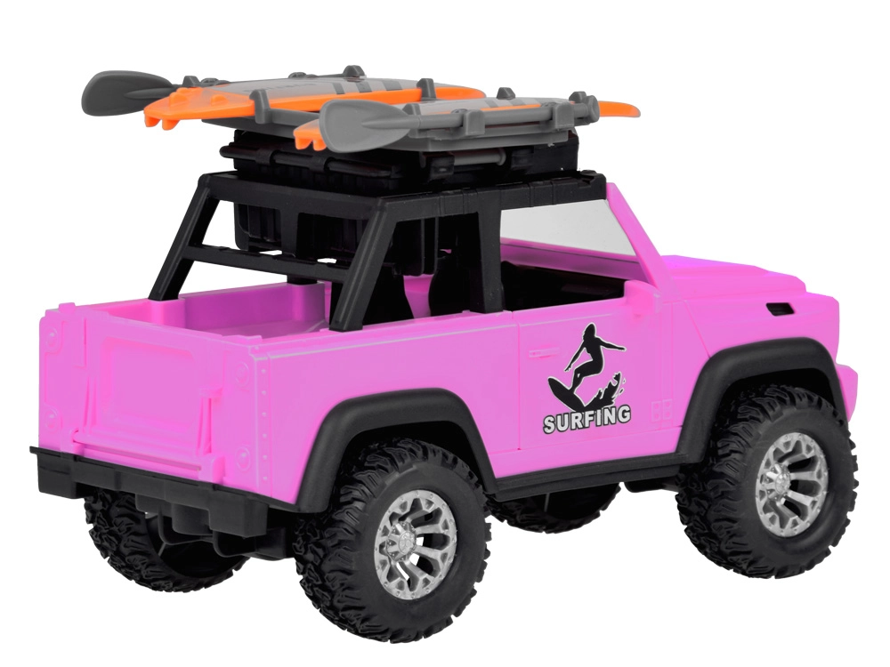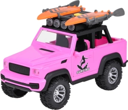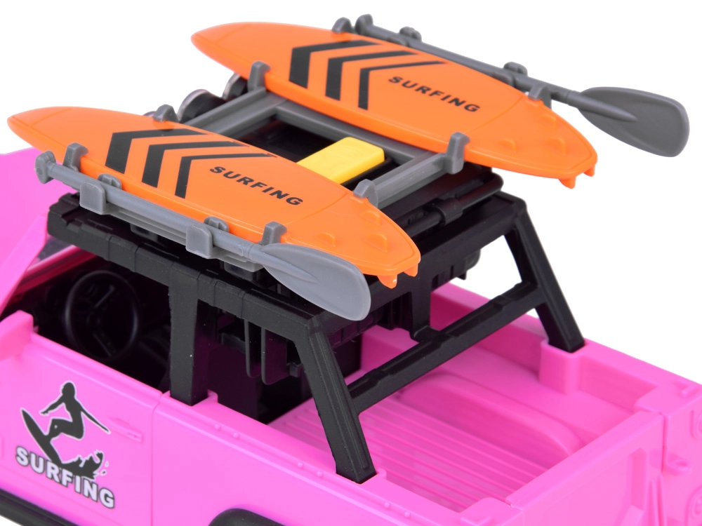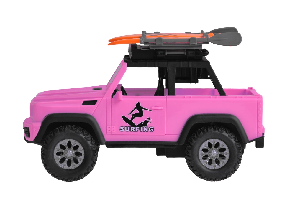 Pateicoties robustajiem gumijas riteņiem ar izteiktu protektoru, auto pārvarēs jebkuru spēļu “apvidus” šķērsli. Jumta bagāžnēsējs ar diviem sērfo dēļiem akcentē pludmales un ceļošanas tematu, tāpēc auto lieliski iekļaujas jebkurā bērnu fantāzijas pasaulē.