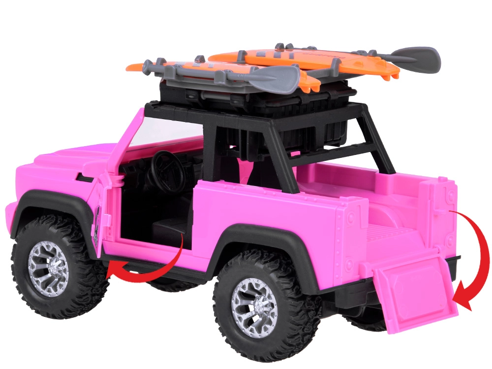 Atklājiet jautrību pilnā sparā ar rozā bezceļu auto, kas iedvesmo bērnus radošai spēlei un piedzīvojumu ekspedīcijām. Reālistiskas detaļas, piemēram, atveramās durvis un nolaižamais bagāžnieks, papildina gaismas un skaņas efekti vēl iespaidīgākai pieredzei.