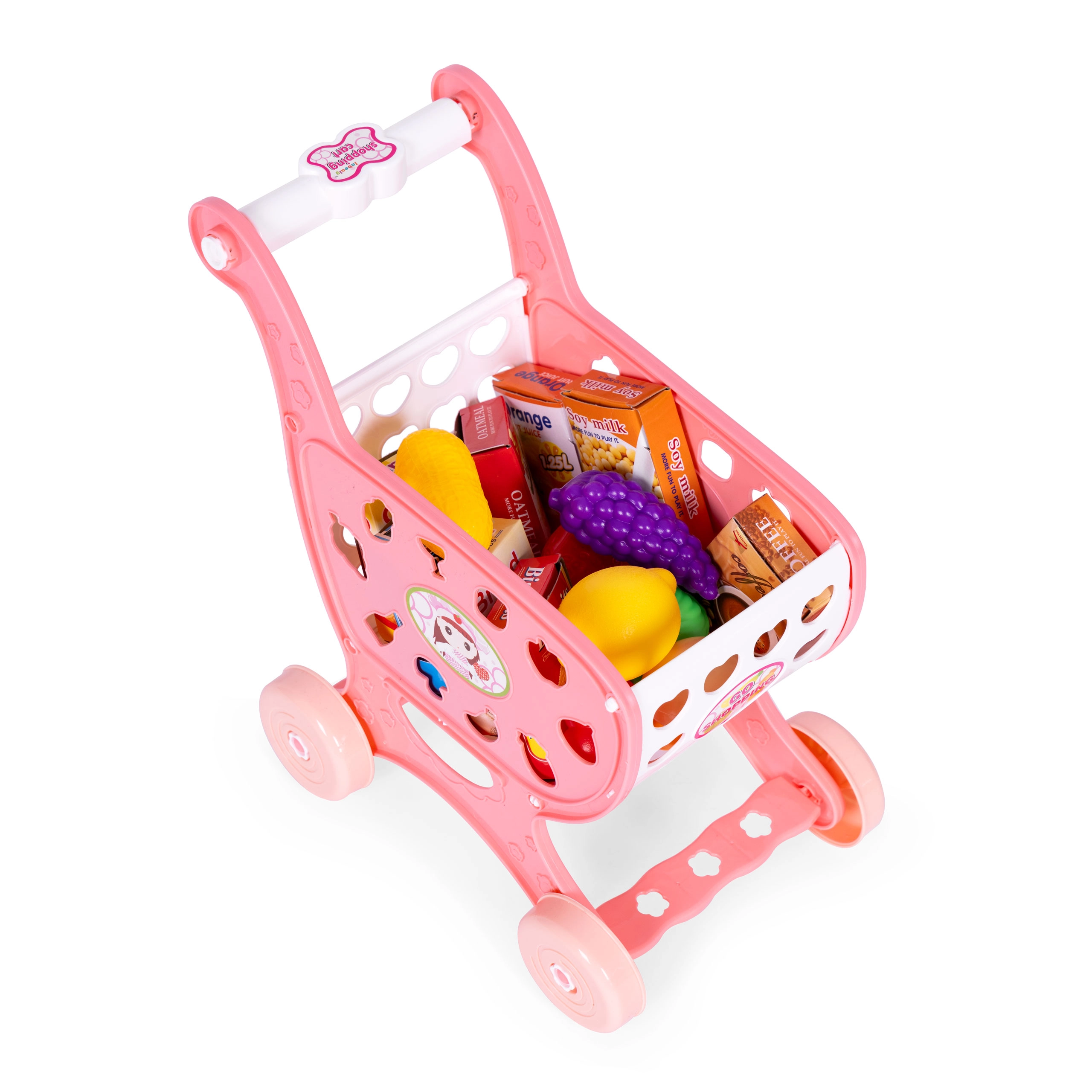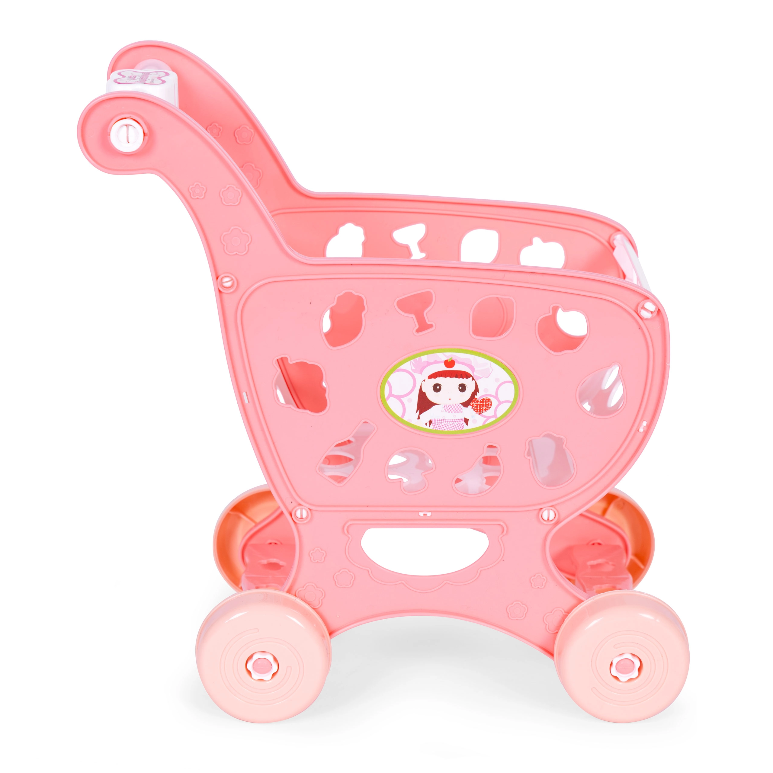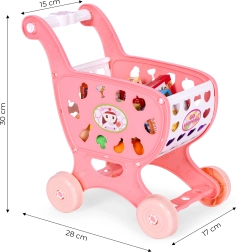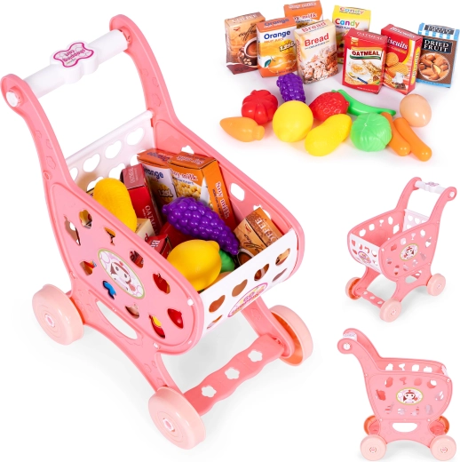 Šie vieglie un stabili iepirkumu ratiņi rozā krāsā ar kustīgiem riteņiem bērniem piedāvā reālistisku iepirkšanās spēli. Komplektā ir daudzveidīgs 18 pārtikas vienību klāsts (augļi, dārzeņi, olas, gaļas izstrādājumi un kastītes ar “pārtiku”), kas palīdz attīstīt motoriku, organizēšanu un sociālās prasmes.