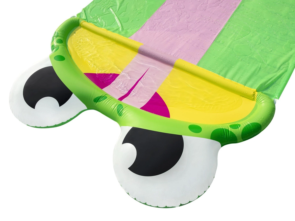 Uzstādīšana ir ātra un vienkārša – vienkārši izritiniet slidkalniņu uz zāles, pievienojiet dārza šļūteni, un izklaide var sākties!