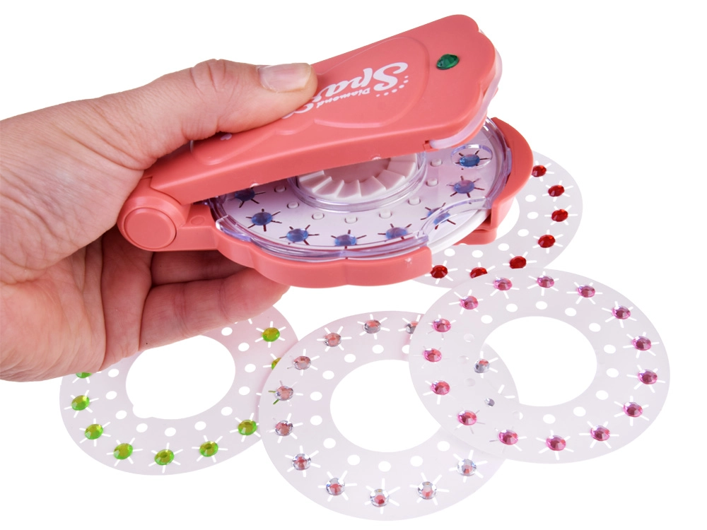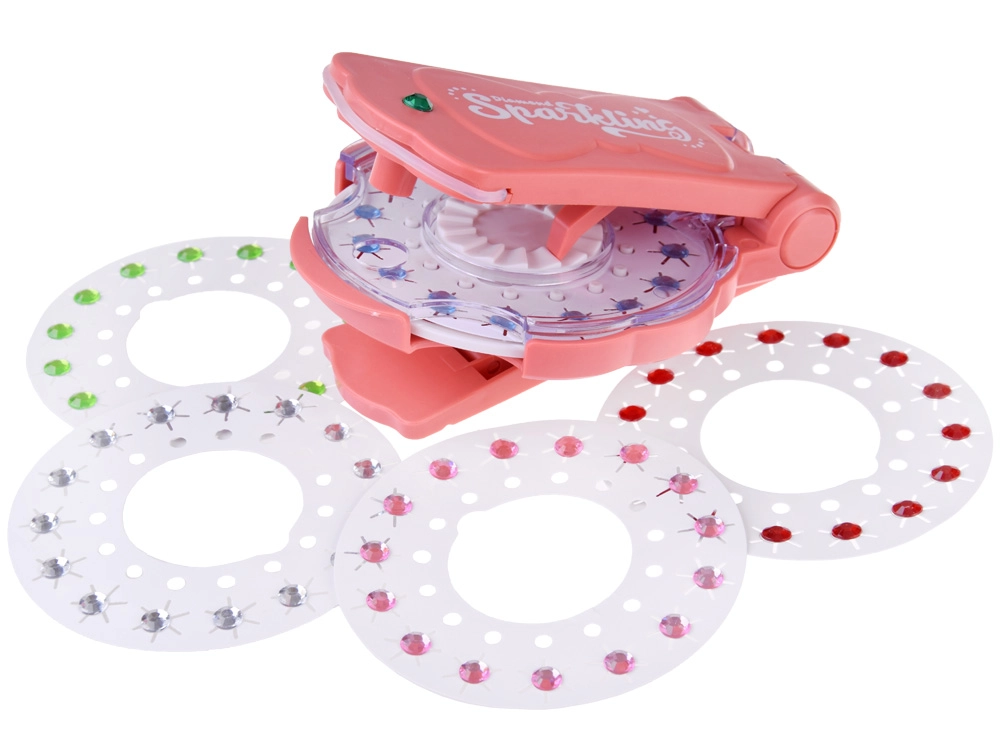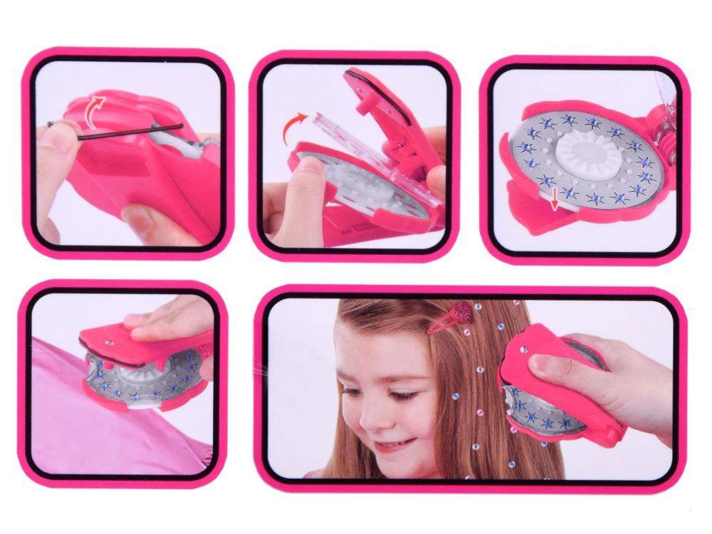 Šis veidošanas rīks ir izstrādāts, lai būtu drošs un viegli lietojams. Izrotājiet savus matus vai apģērbu ar kristāliņiem, kurus var viegli noņemt. Piemērots visiem matu tipiem un dažādiem materiāliem. Iepakojumā atradīsiet dažādas šablonas ar dimantiem bezgalīgai izklaidei un radošumam.