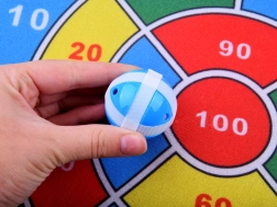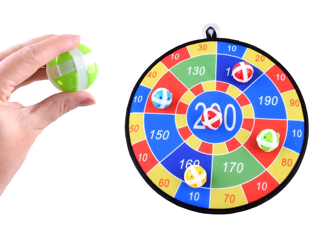 Bumbiņas ar lipekli stingri pielīp pie mērķa, tāpēc var iztikt bez klasiskajām šautriņām. Ideāli telpām – saudzīgi gan pret mēbelēm, gan mazajiem spēlētājiem.